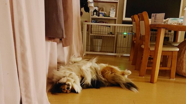その後、犬部屋独占の夜はヘソ天で爆睡(笑)