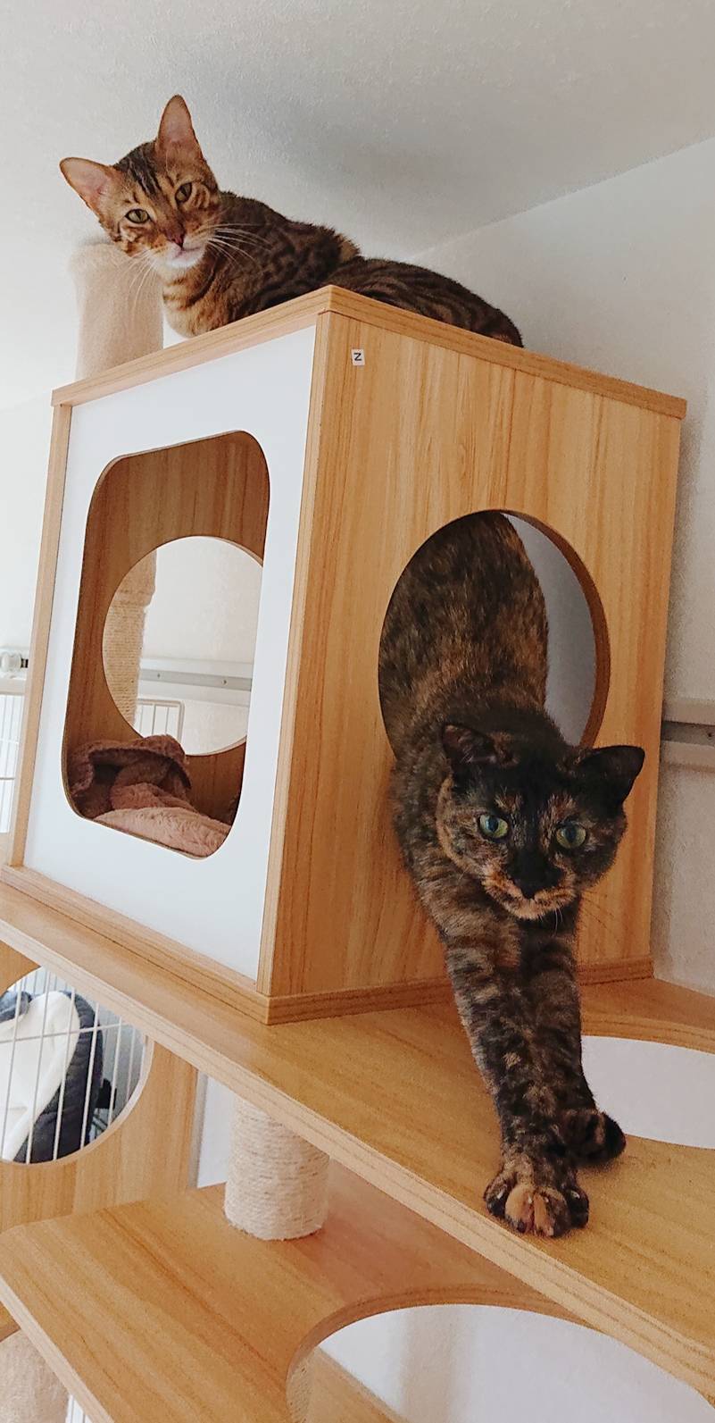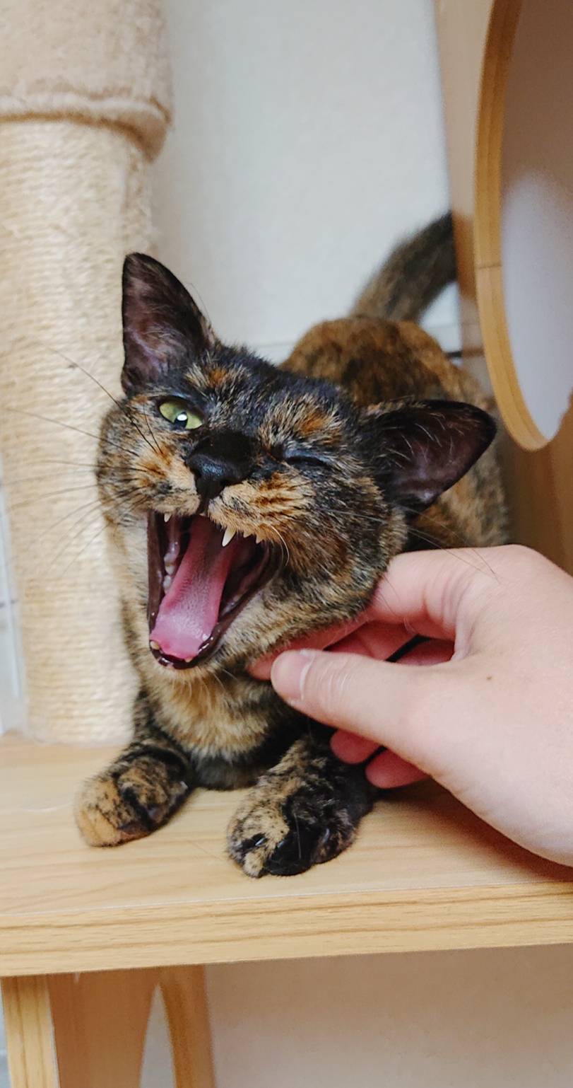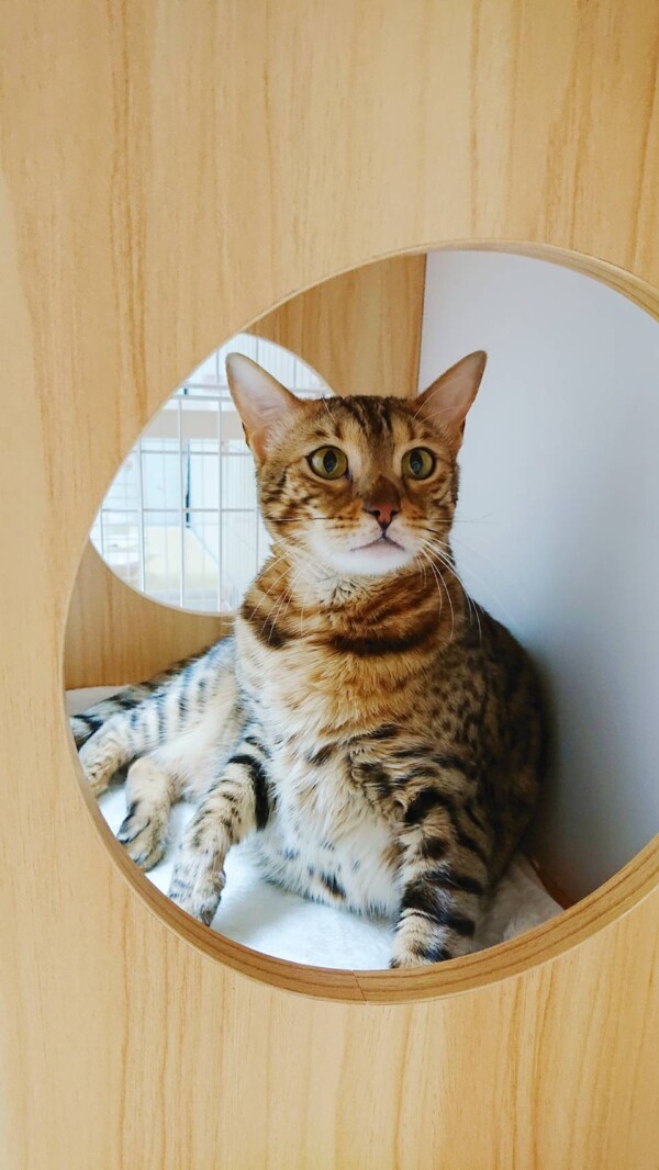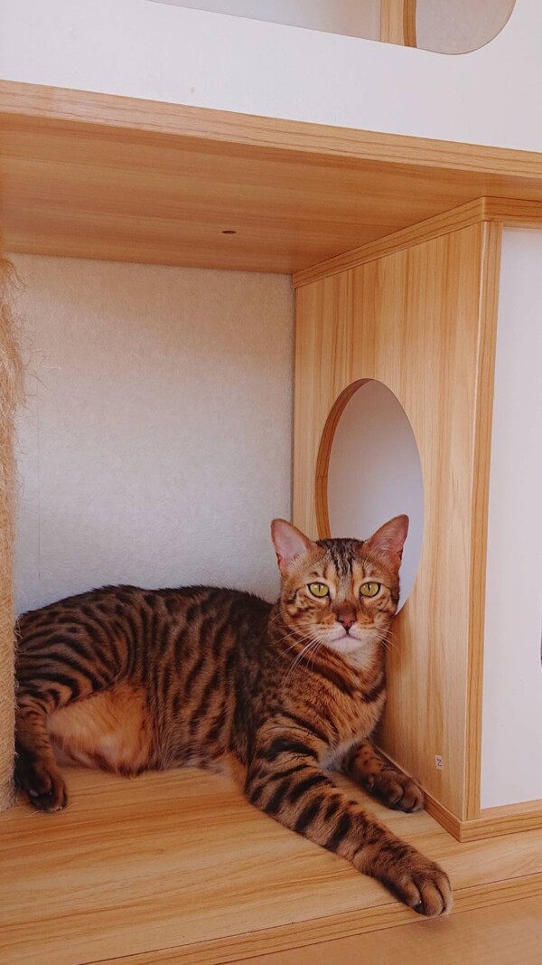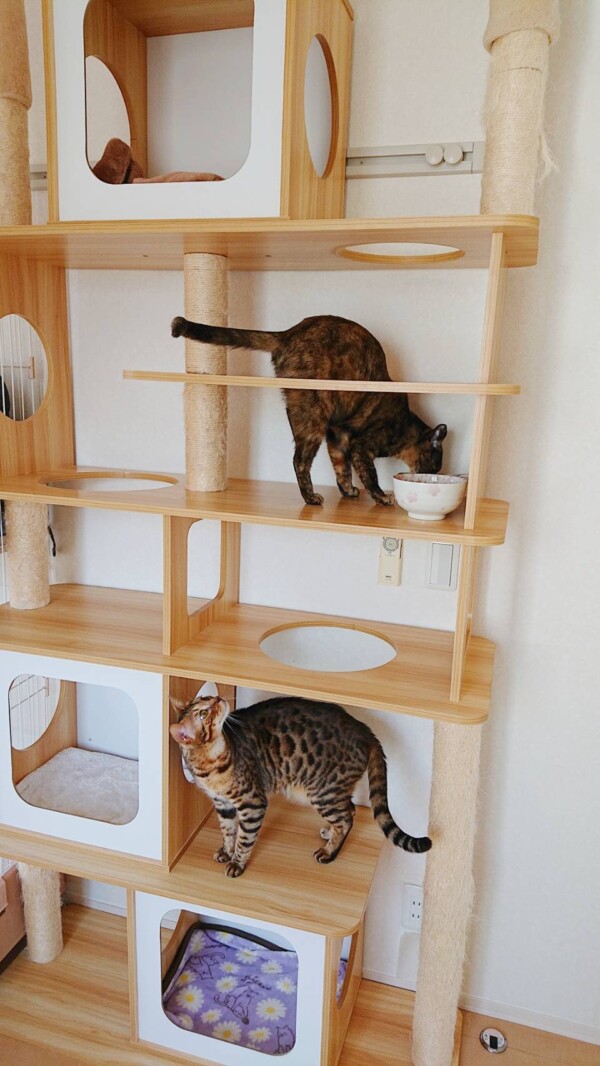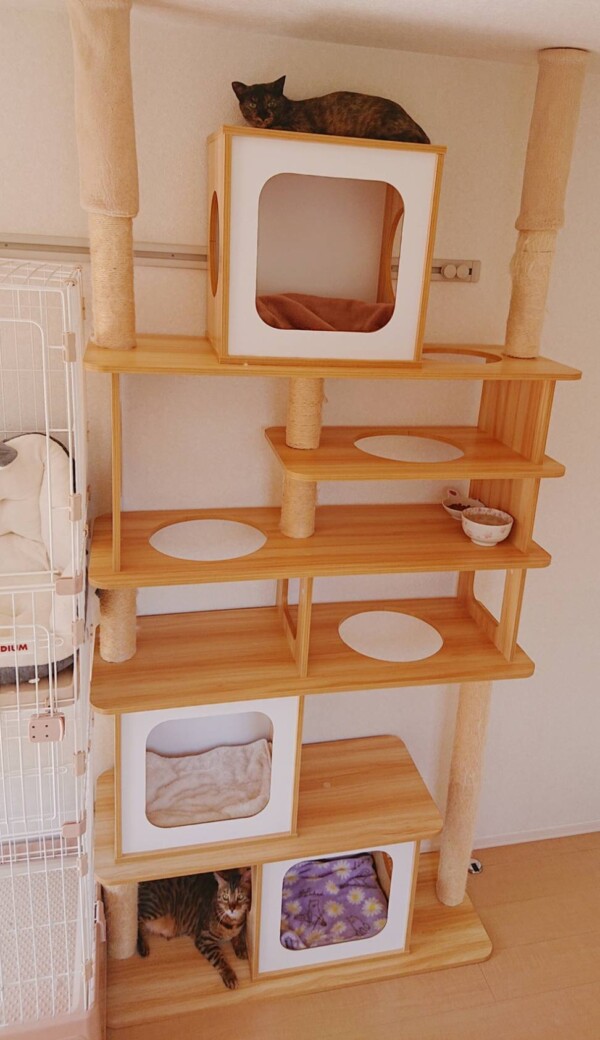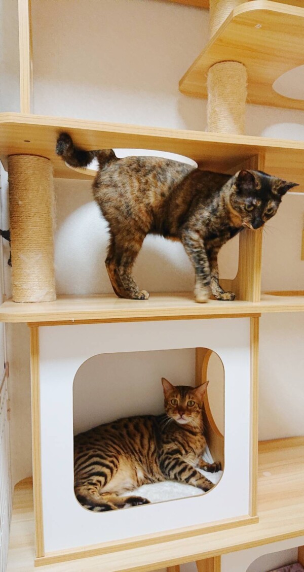 相変わらず入室したばかりの時はタワーに引きこもりがちですが、お泊りの回数を重ねるにつれて、ご飯を食べるまでが早くなり(*´艸`*)