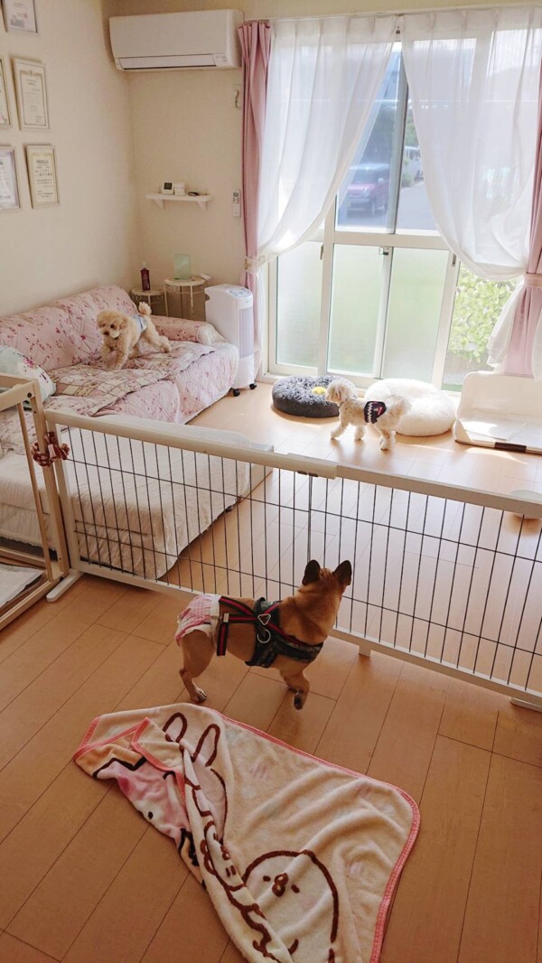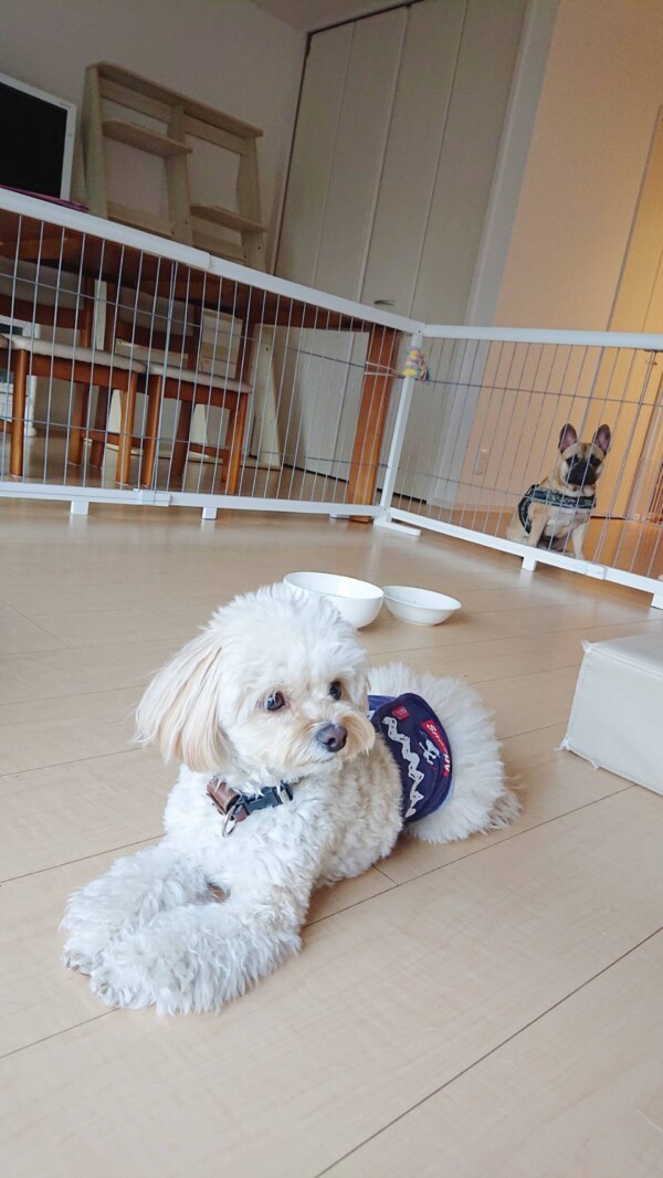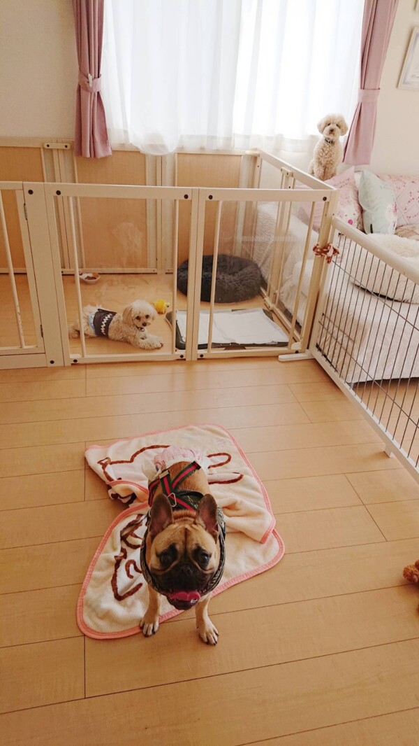 スタートはサークル内で朝ご飯から❤(ӦvӦ。)