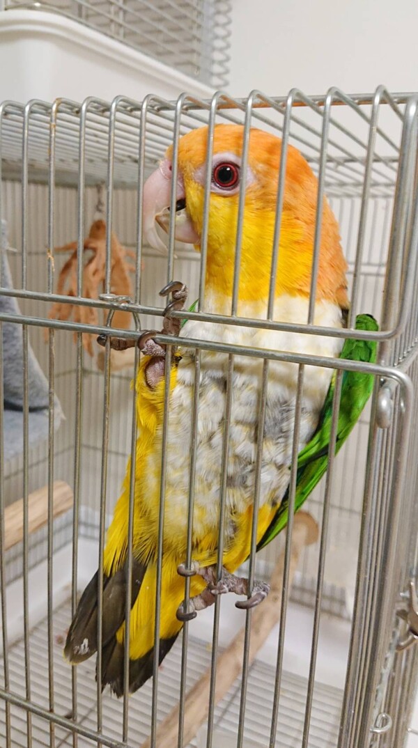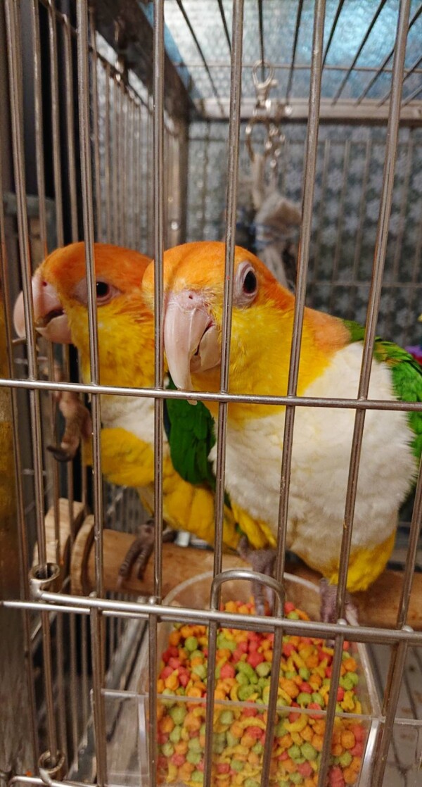同じ色の子が2羽で同じケージに入っているのですが、2羽共におっとりさん❤