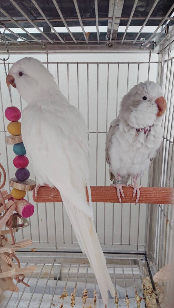 白い子はとってもお喋り♪2羽でしょっちゅう喧嘩しています(笑)