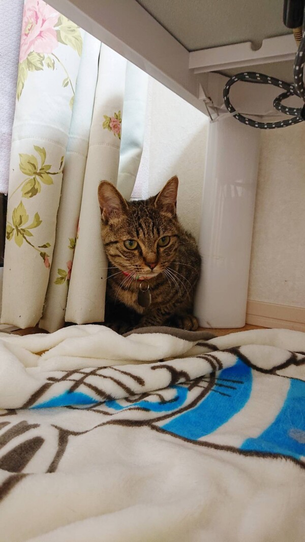 カーテン裏に引きこもったまま、自力では飲まず食わずトイレせずの丸2日間(*´ω`*)