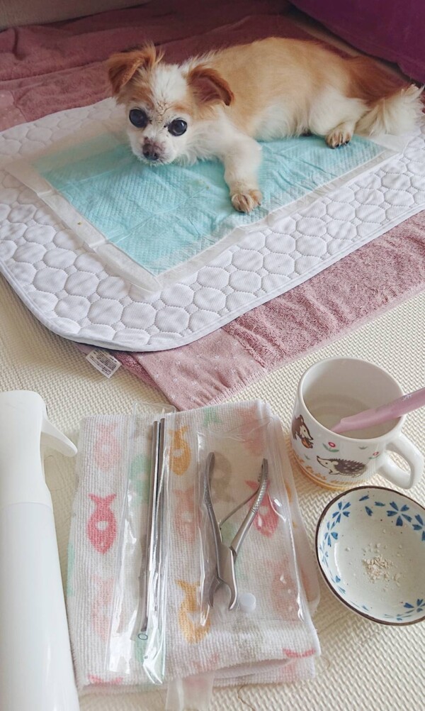 ご飯の後にタオルで歯茎を拭くだけでも出血していましたが、おーちゃんのママさんもとても素直な方で、今回もシッターのお願い通りに歯磨きとサプリメントを頑張って下さり❤