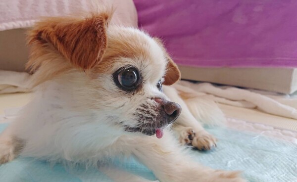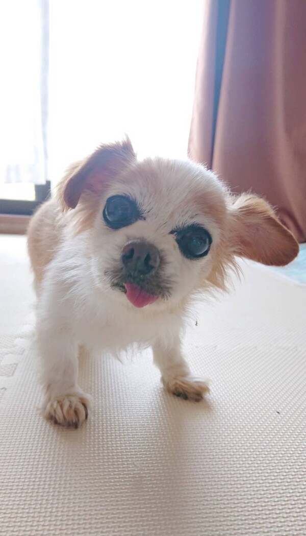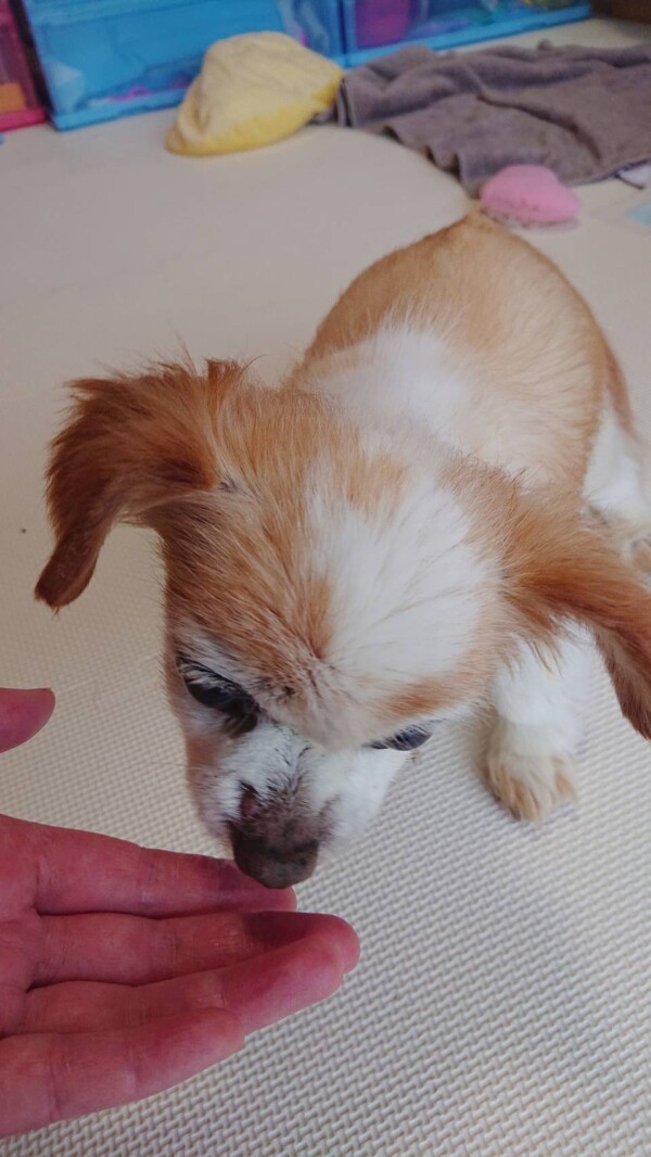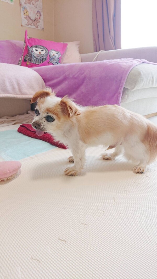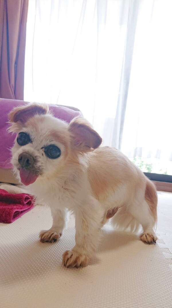 初めて会った時の、横になって寝たきりの状態から、別犬のようにずいぶん良くなりました♪♪♪
