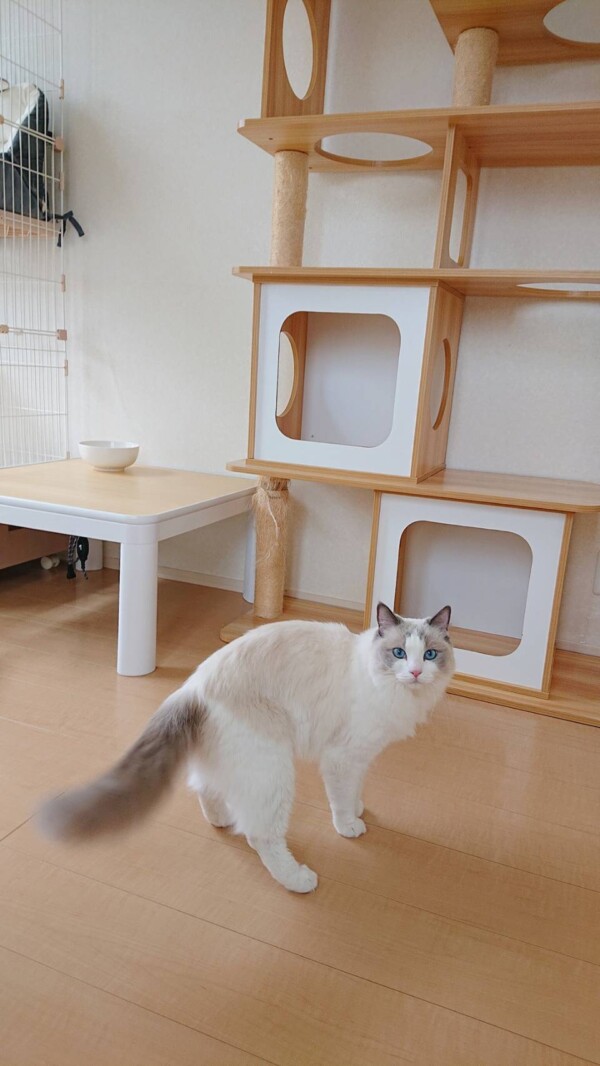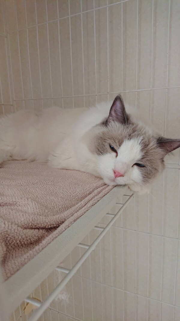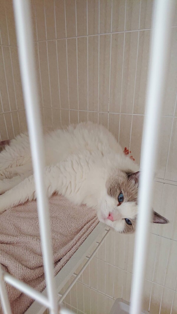 その後、猫部屋が2部屋共に満室になるので、ルナちゃんはプライベートルームの3段ケージに移りましたが☆