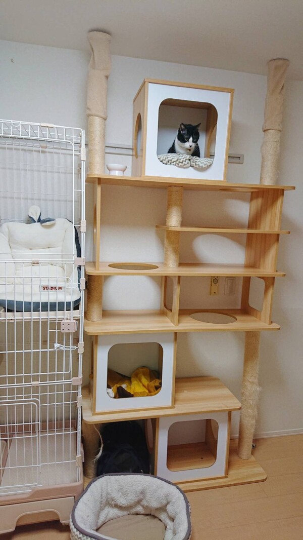 タワーから降りたなとか、トイレしてるなとか、オモチャで遊んでいるな、とか(*´ω`*)🍀🍀🍀