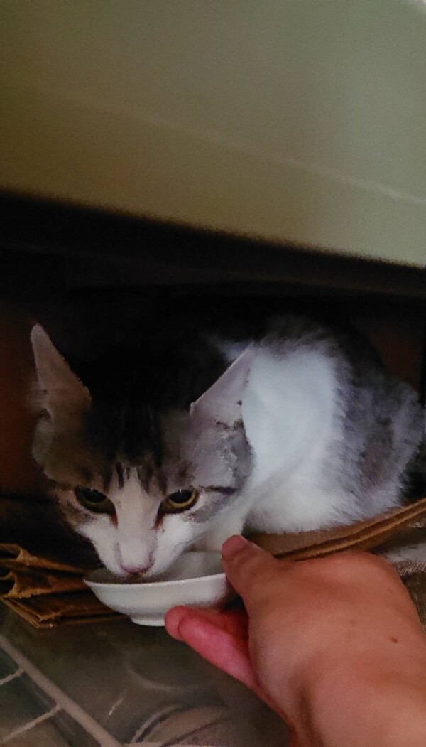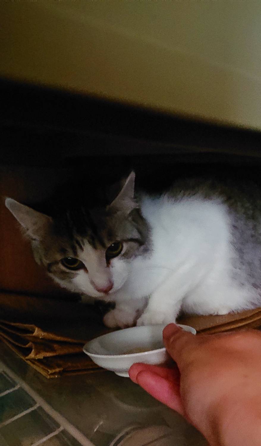 2回目3回目は目の前でチュールを食べてくれたので❤(ӦvӦ。)