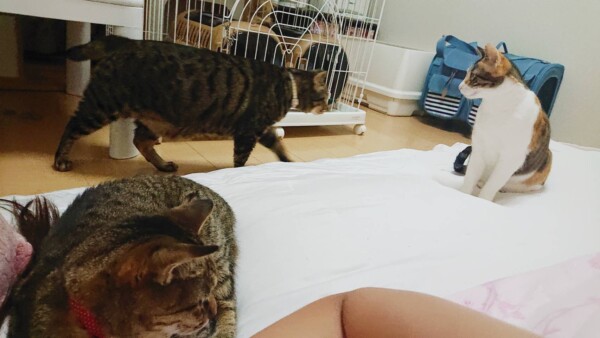49日間の超ロングステイ中の3にゃんです(*´∀`*)🌻🌻🌻