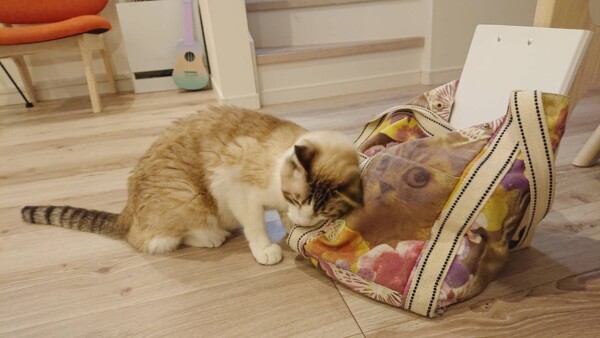 いつも通り、頭から首、背中、お尻、長い尻尾まで、一直線に触って、瞬間的に健康チェックするシッター(*´艸`*)