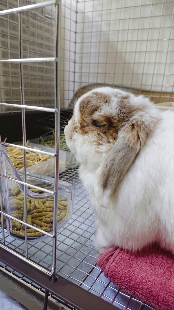 病院の先生曰く「年齢的に」との事らしいですが、呼吸が辛いみたいで自分で気道確保している、この体勢でいる事が長いです(。ŏ﹏ŏ)💦