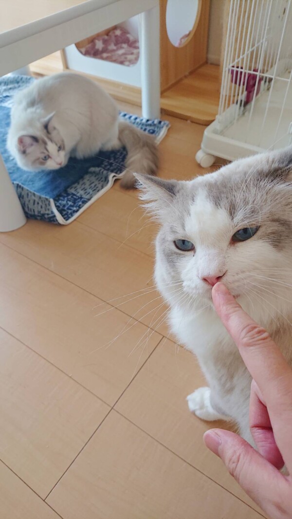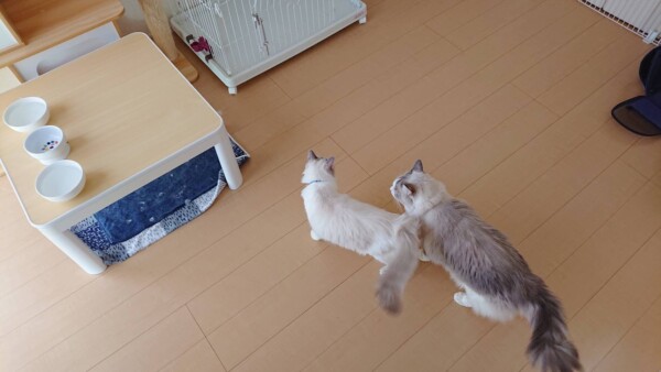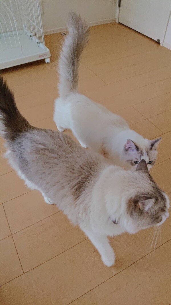パパは一緒ですが、紅のママは神風(みかぜ)で、藍ちゃんのママは神桜(みおう)なので、2匹は異母兄妹という関係になります❤(ӦvӦ。)