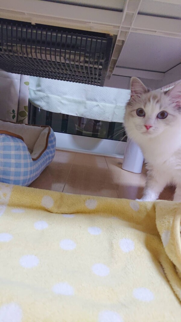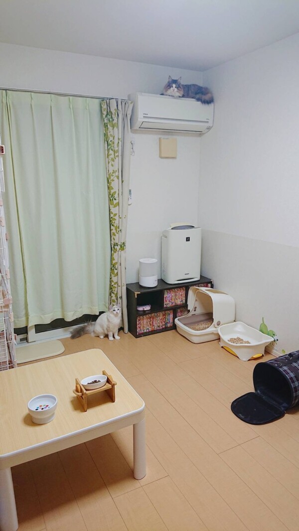 そりゃ、急な環境変化にビックリしてエアコンの上に行っちゃうよね(笑)
