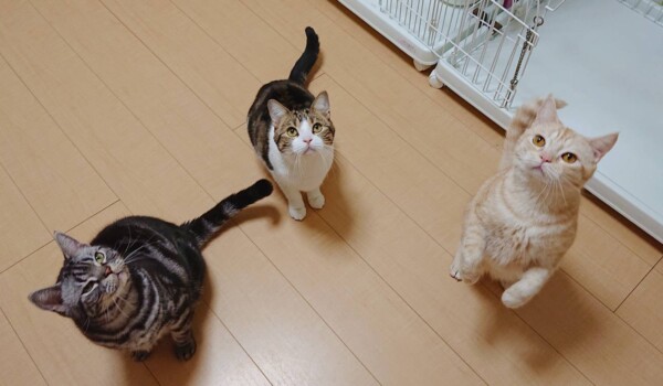 3匹揃って何も問題なく、環境変化にも通常猫ちゃんより臆することなく、甘えん坊さんの優しい性格で上手に育てられているなぁと思いました❤