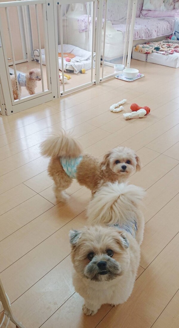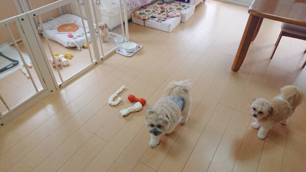 初めてのお泊りにも関わらず、先に入室していたセナ君も武君も落ち着いていたので、ちゃろ君も落ち着いていました❤(ӦvӦ。)
