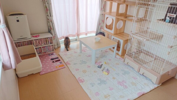いつもは緑のお部屋率が高いまめちゃんですが、今回はピンクのお部屋❤(ӦvӦ。)