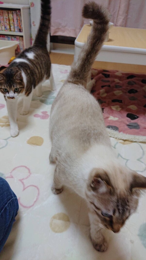 ご機嫌で陽気で甘えん坊で、2匹似たような性格(笑)