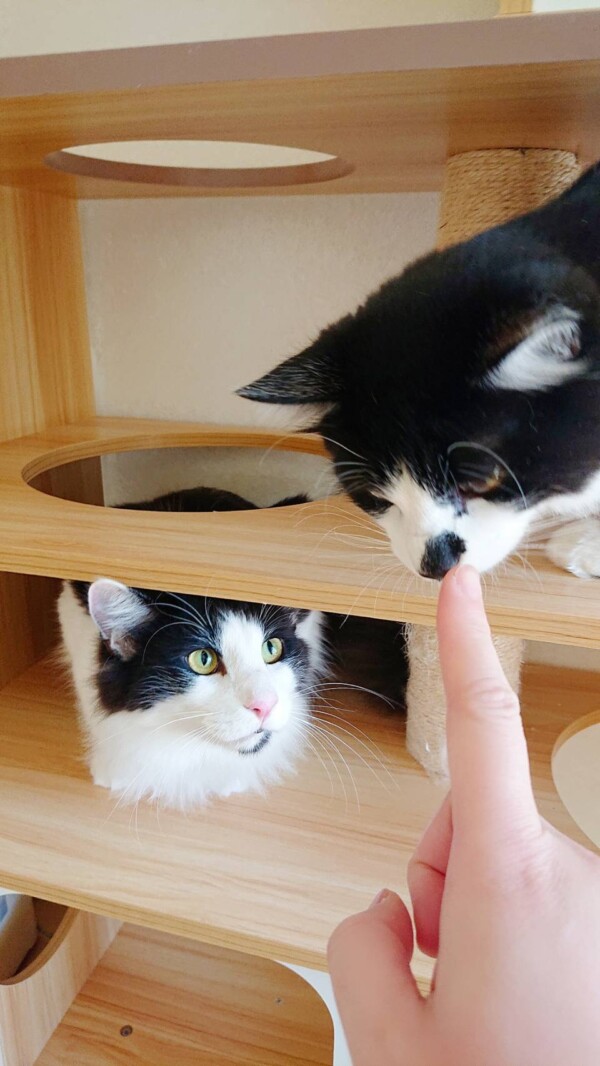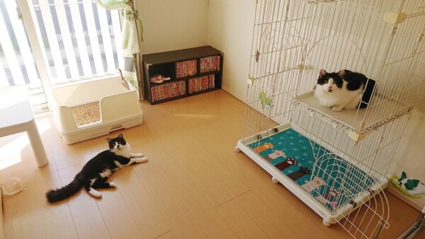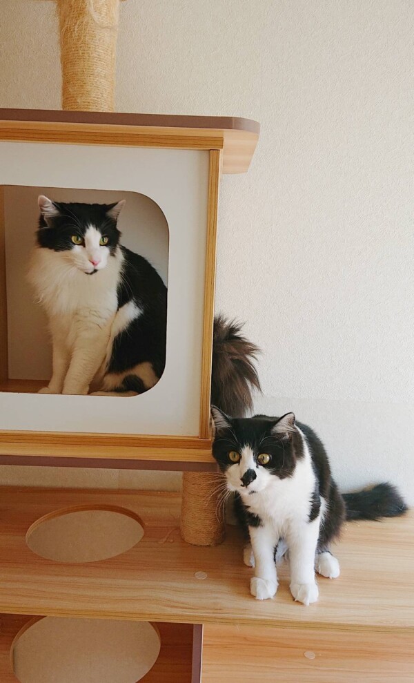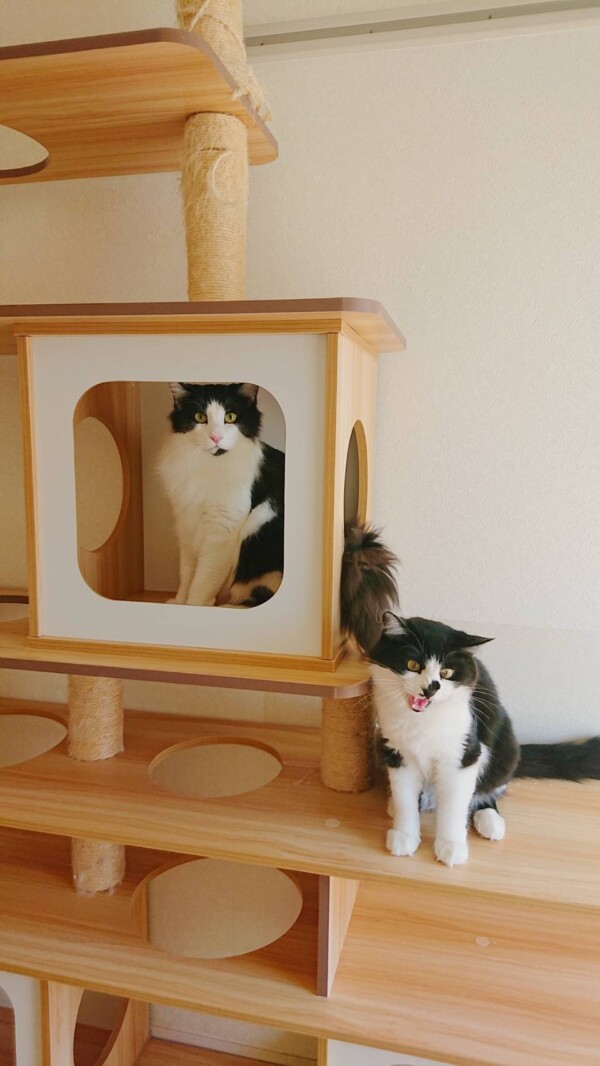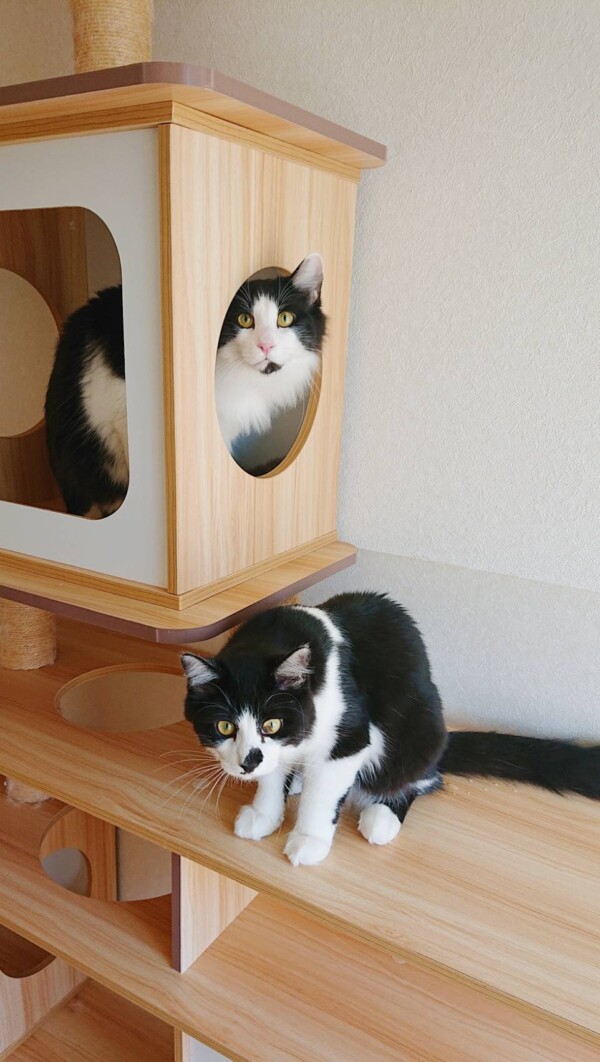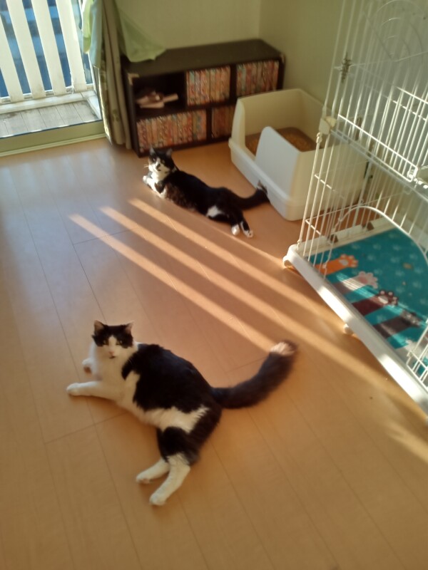 可愛い白黒猫の兄弟、初めてのお泊りです(*´∀`*)❤