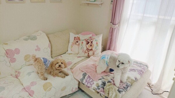 初めましての時だけ少し警戒しつつも、もう相部屋になったワンコ達と同じ目線で過ごせます♪♪