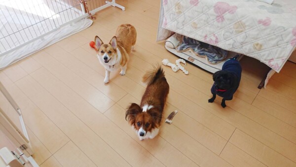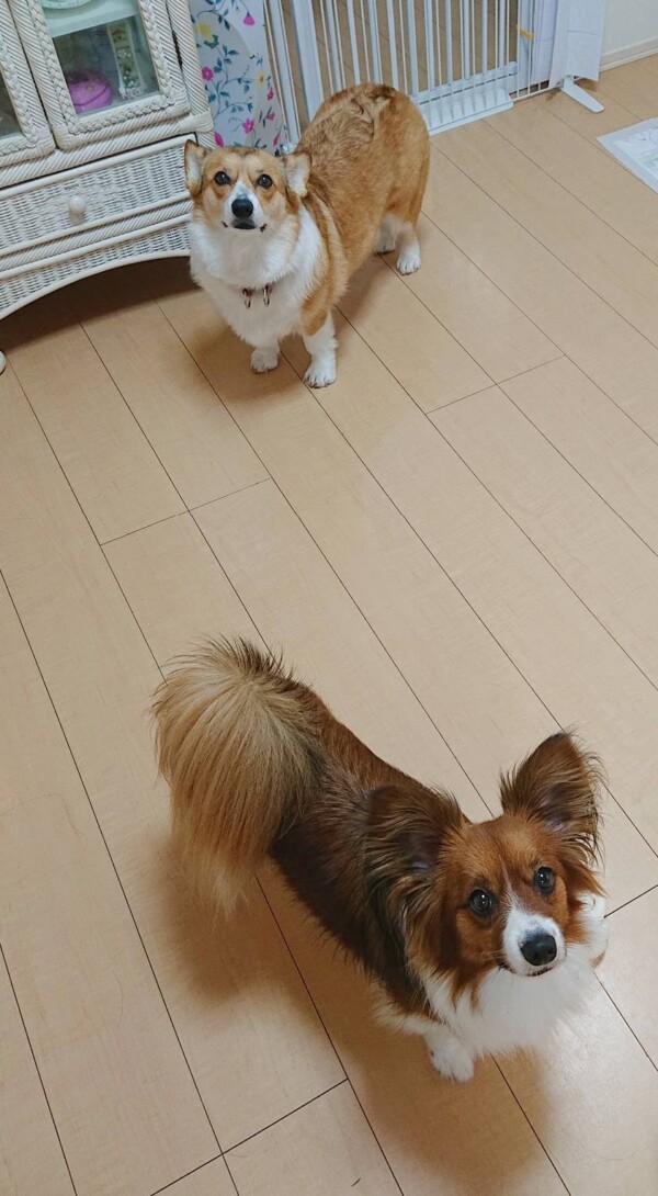 パピヨンの顔に、コーギーの体!(´゚д゚`)✨