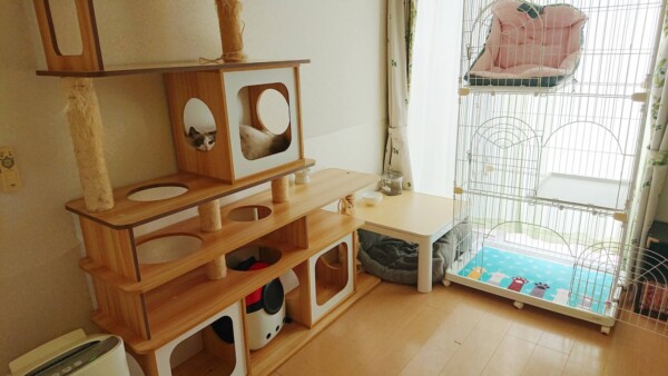 そして、飼い主様を2階猫部屋に上がって頂く時は(ゲートの問題で)全ての動物達を収納しないといけないので、実はとても大変なんです。なので、飼い主様がホテル内に入れるのは初回の時だけになっております🍀