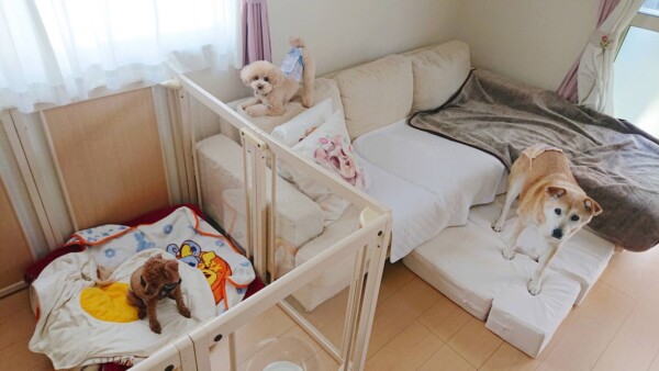 モルトちゃんに威張りん坊が出てしまい、吠え立てられてソファー上から動けないマメ君(;´∀`)💦