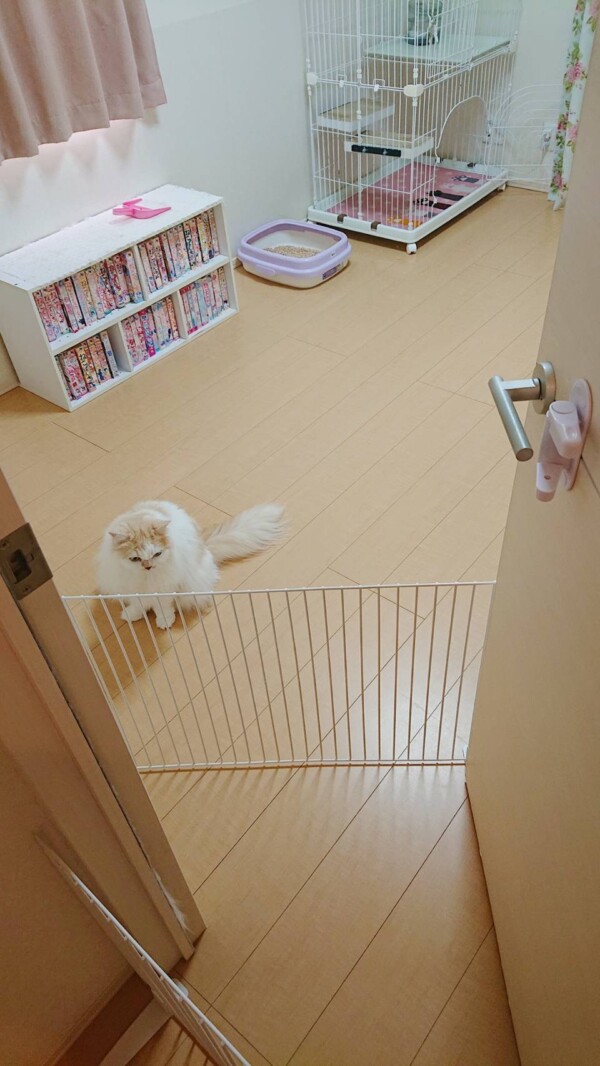 もう何年も来てくれているモモ君ですが、最近はわざわざ扉の前で待ち構えて攻撃をしてくるようになったので、今回はいよいよ扉の前にもゲートを(´;ω;`)
