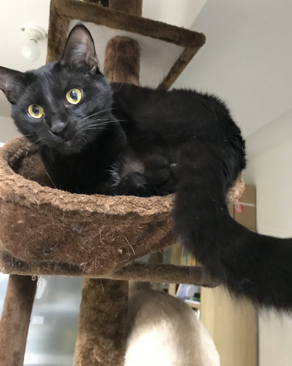 わさびがキャットタワーから降りなくてつまらないにぁ🐱