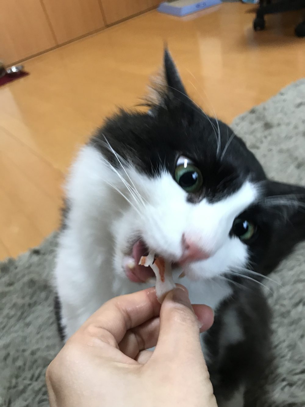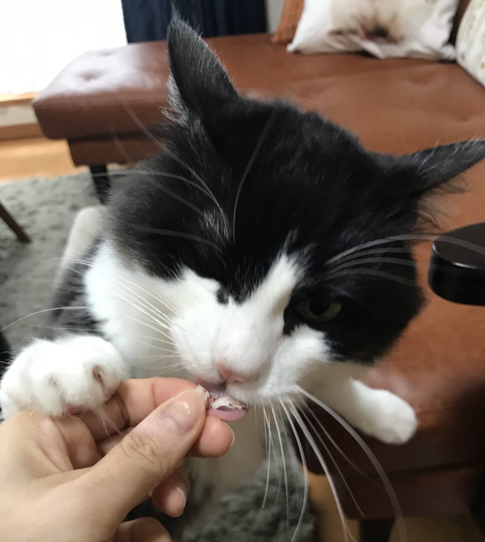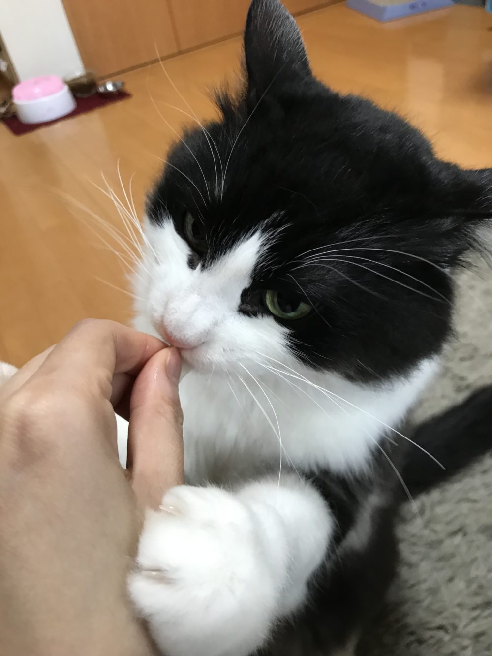 こんにちは😃 ペットシッターはぴねすです。 おとなにゃんこのリン君😼 今回は、おやつの様子を😋 大人になってもおやつは大好き😋 片手をソファーについて、片手で手をしっかり掴んでます😆 今度は両手でしっかり握ってます🤣 こんなお顔はおやつの時しかみれません😅 おやつを美味しく食べるリン君をお届けしました🍰🍭🍦