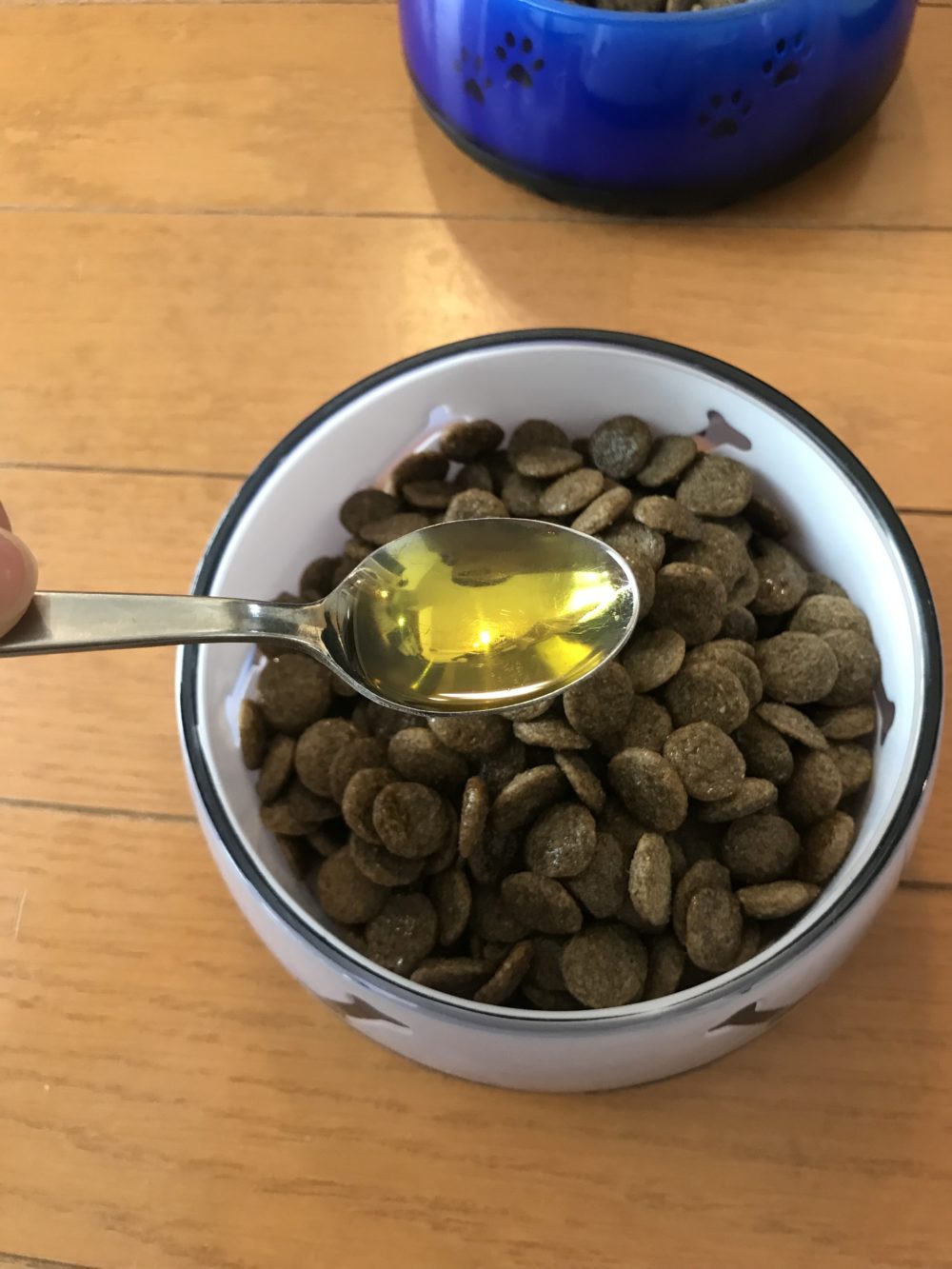 ご飯はオーガニックのハードにこちらもオーガニックのオイルをかけてあげます😋