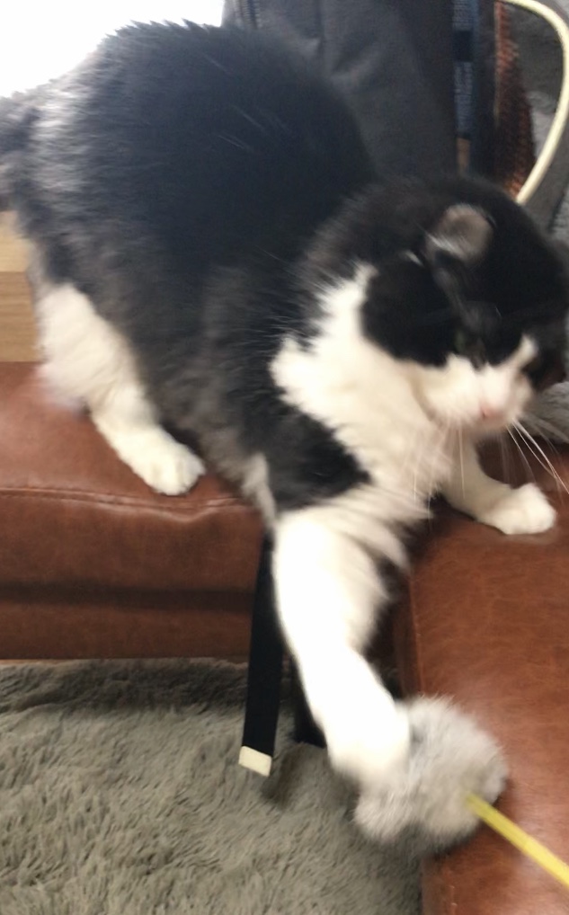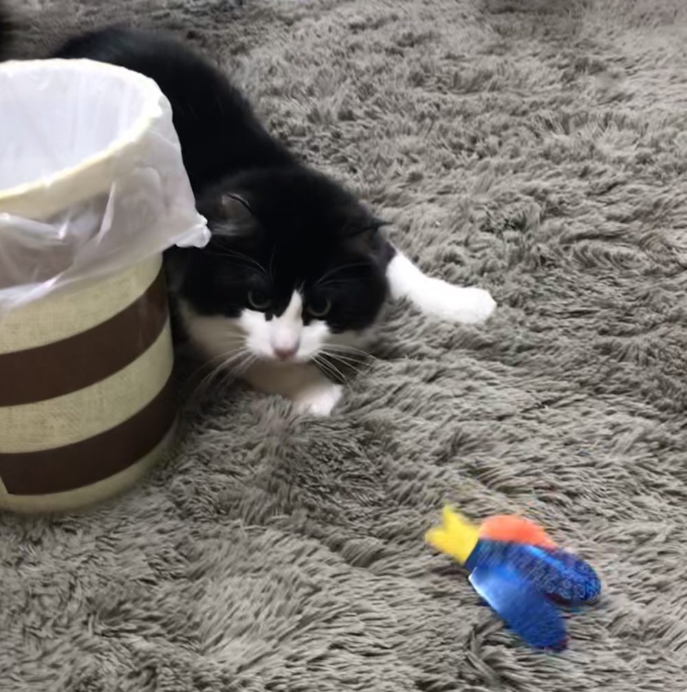 こんにちは😃 ペットシッターはぴねすです。 今日はおもちゃで遊ぶリン君をお届け🥳 カーペットと同化しているぽんぽんおもちゃもバッチリ狙ってます😼 えいやぁー‼️ 逃がさないにゃー😼🐾 いいお顔してますね😆 羽のおもちゃもありますよ🧚♀️ いつも、楽しく遊んでくれるリン君です☺️