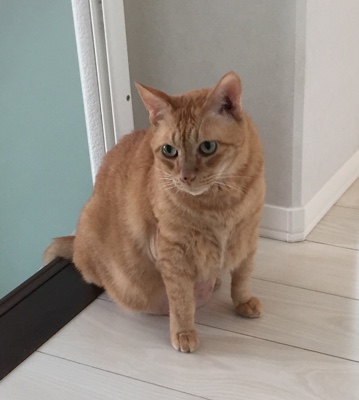 初日、お家に入ると早速鳴き声が聞こえてきました^_^ どっちかなぁ〜と思いながら、そーっとリビングのドアを開けると、ちゃちゃ◯くんが出迎えてくれました♪