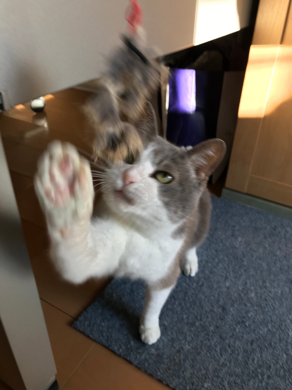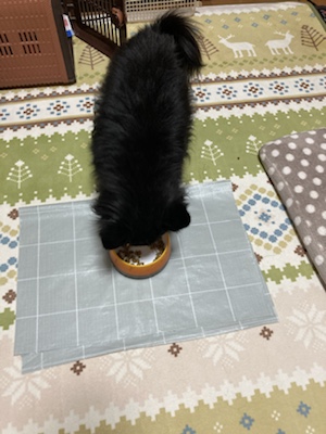 食べている間にトイレシートの交換をしましたが、交換が終わるまで食べるのを待っていました。