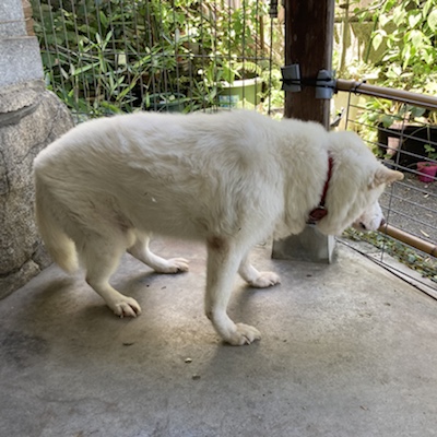 ご飯を食べたあとは少し柵の中をウロウロしていました。足も悪いのでユックリウロウロタイムです(^皿^)