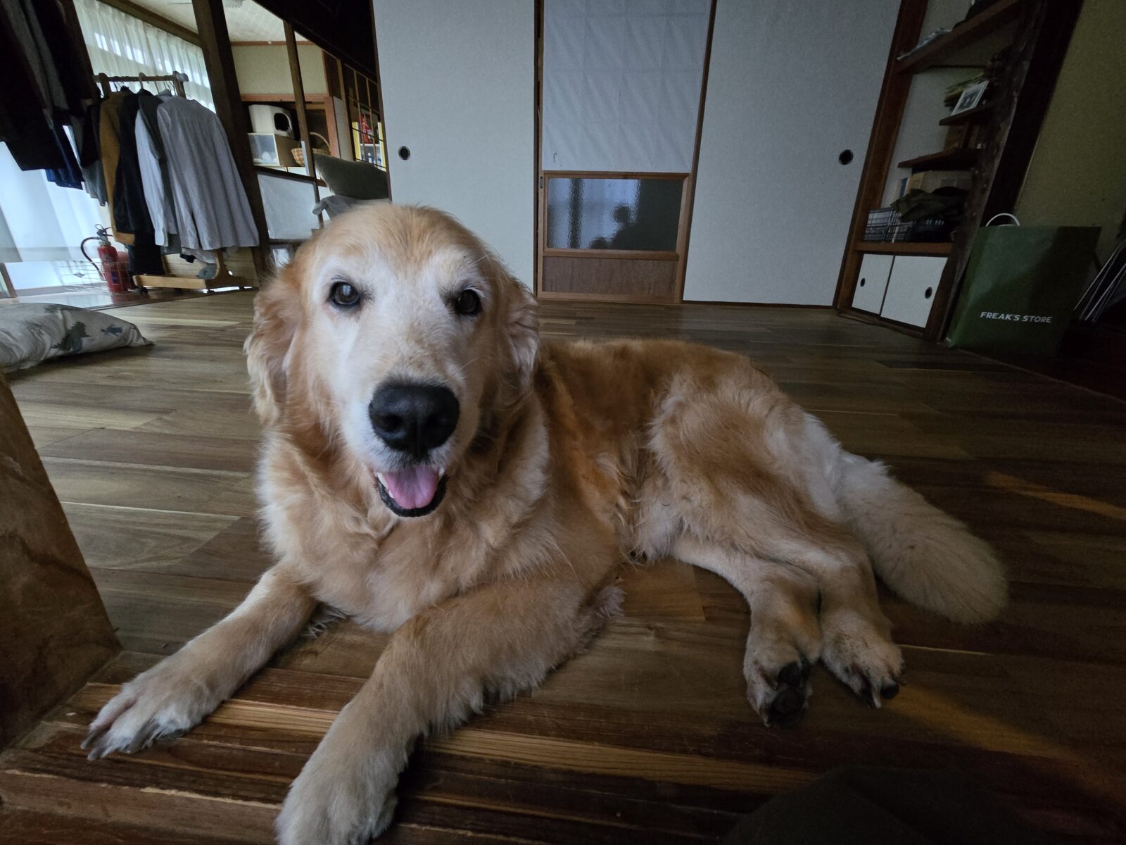疲れたかな?お散歩後玄関前での様子😄