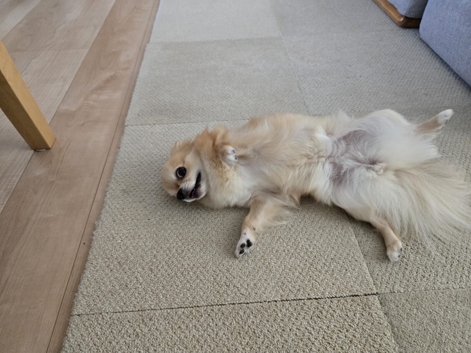 遊び疲れたらゴロン。撫でて撫でて~という感じでしょうか💕