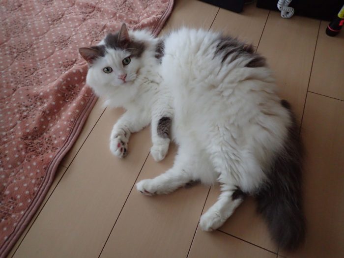 お世話中も足元ゴロゴロ、足にスリスリ 😀