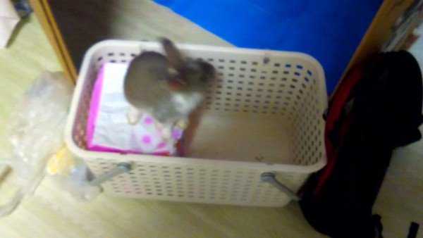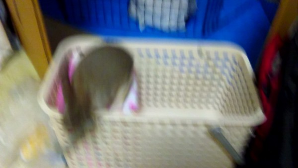 運動はできるだけ広いスペースでとのことなのでどうにか広げようとカゴを使ってみましたが、