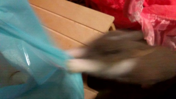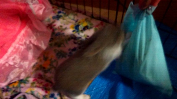 どうやら掃除のゴミ入れに使う青いビニル袋が気になったようで