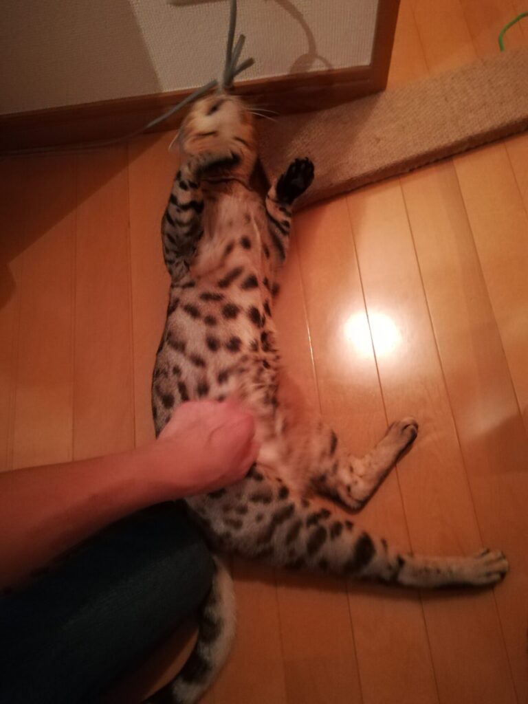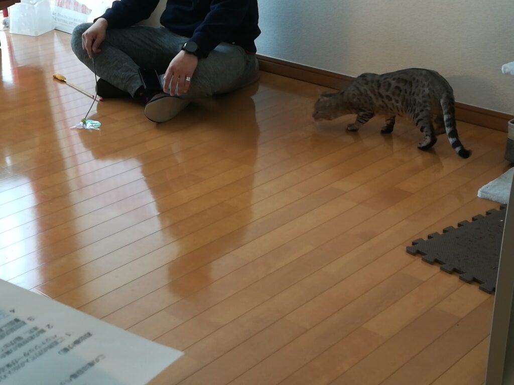 そんな甘えん坊なこむぎ君ですが、遊びの際にはベンガルらしく