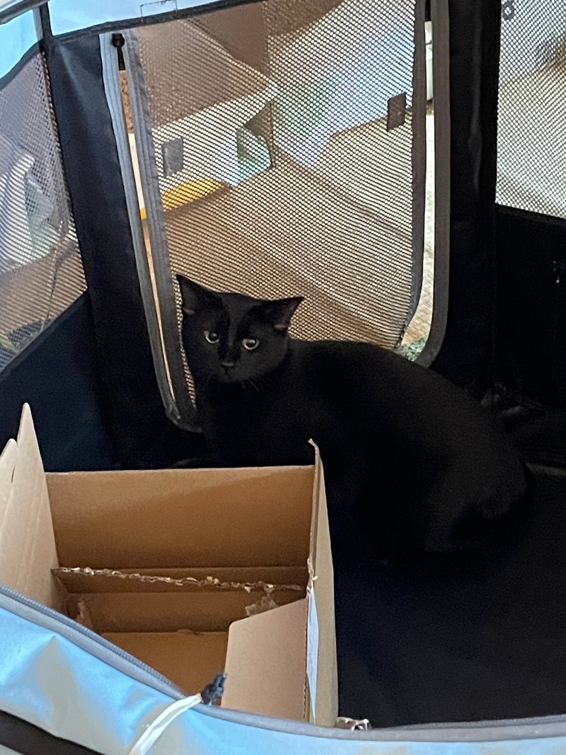 あきちゃんは、全く姿が見えずよーく見ると玄関の下駄箱のスペースからじーと見てました。