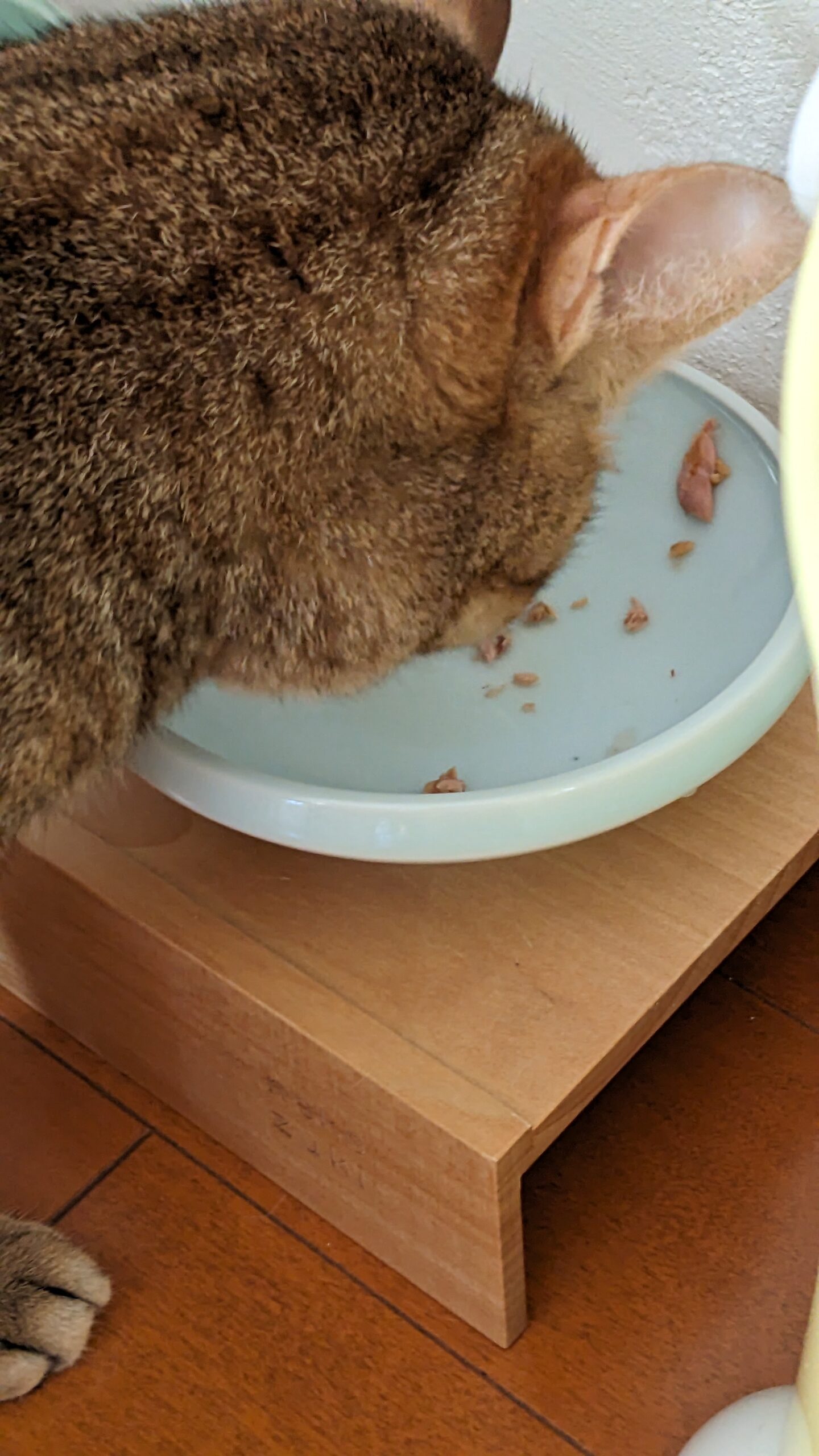 ぼすちゃんが残したごはんを、はもちゃんが食べていました。