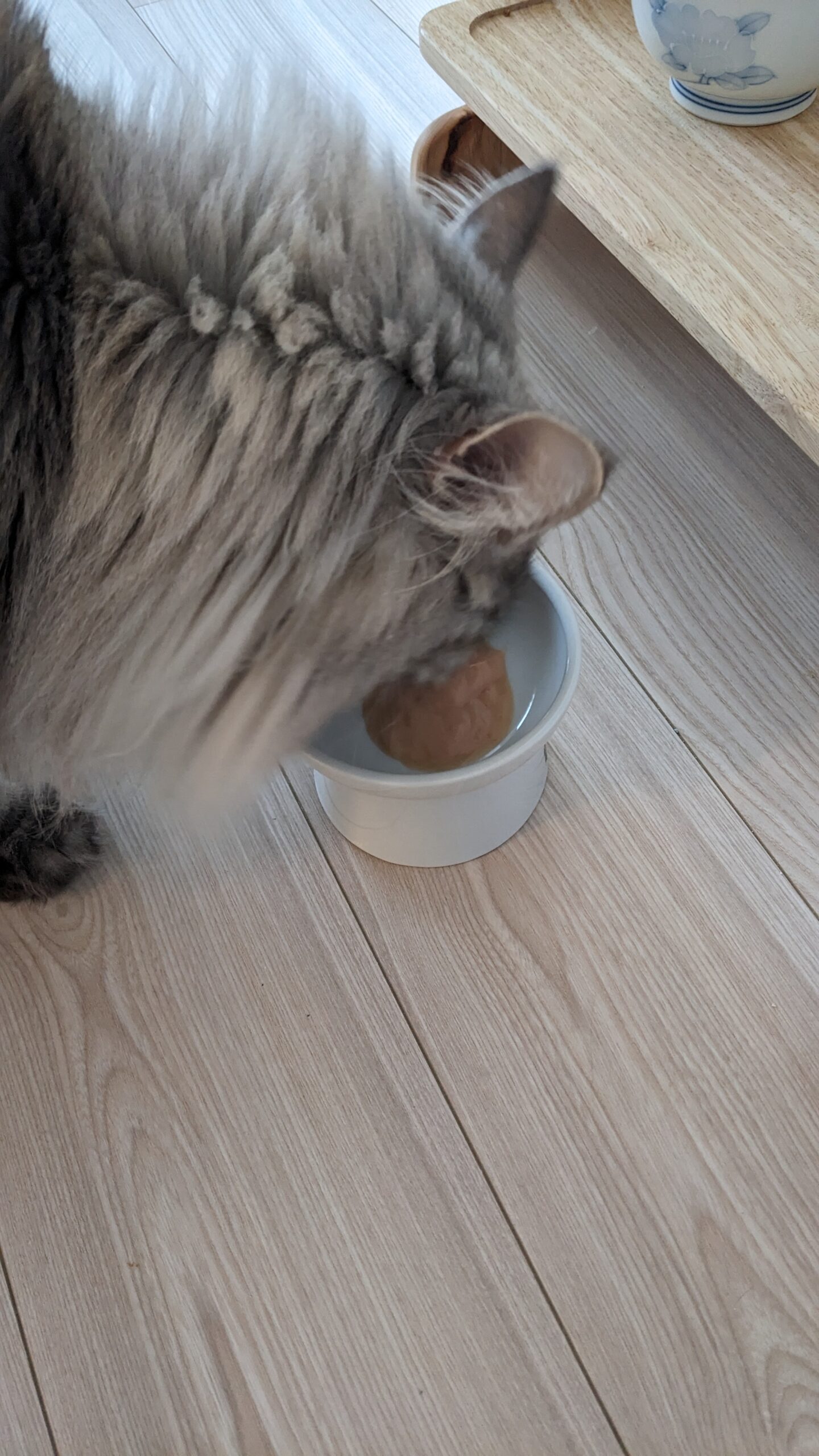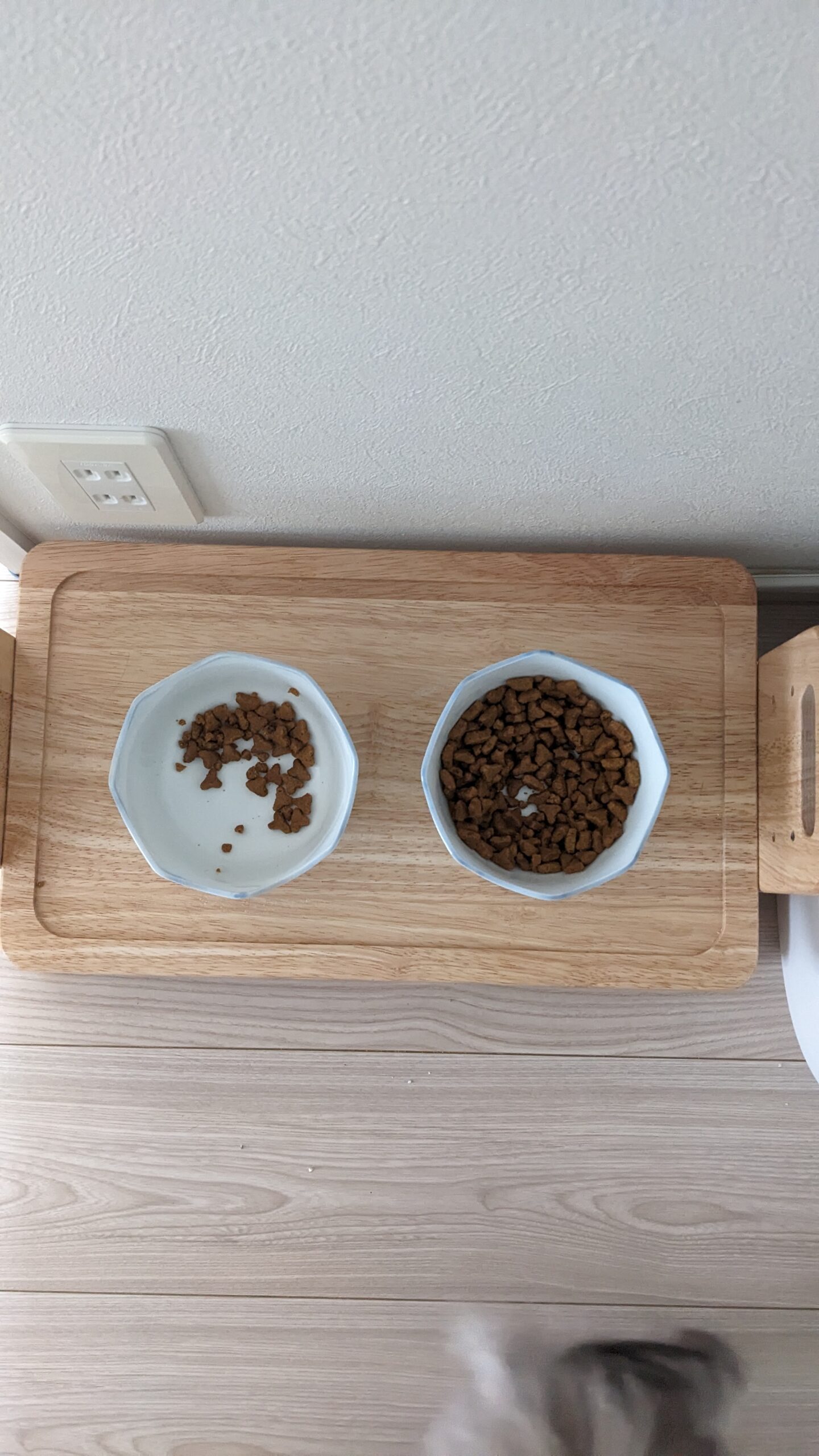 伺わせていただくと、カリカリは半分くらい食べていました。