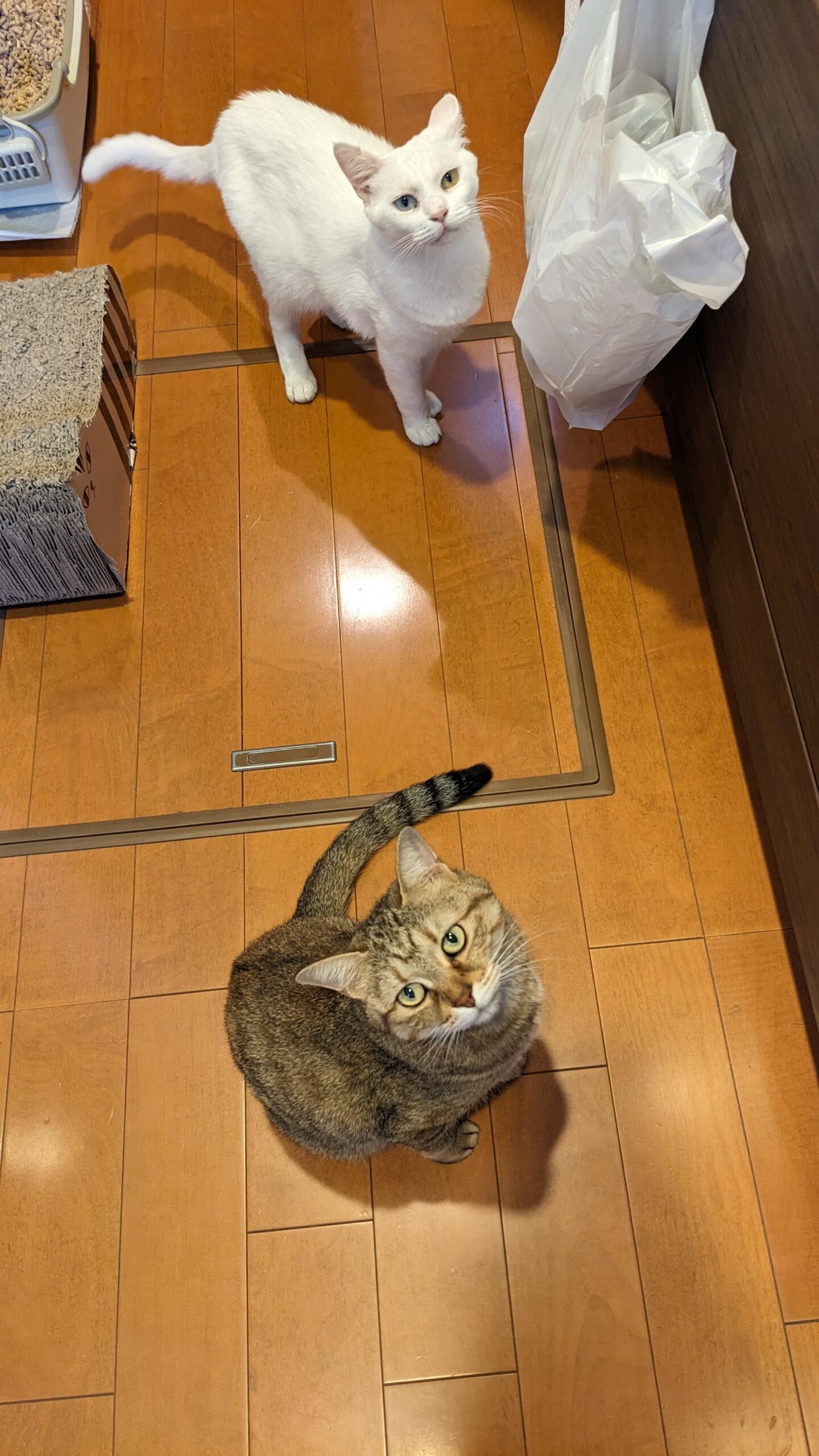 かぼすちゃんは先輩猫さんで、はもちゃんが新しく来た猫さんです😺