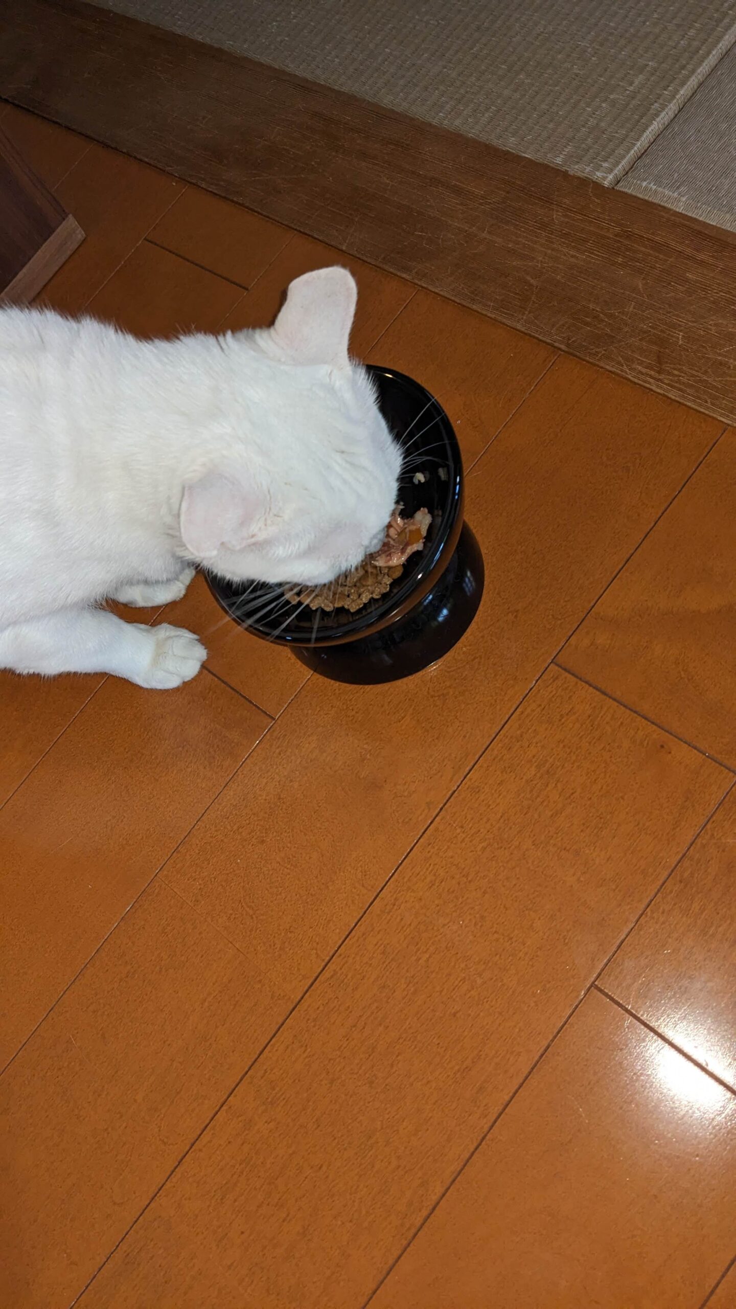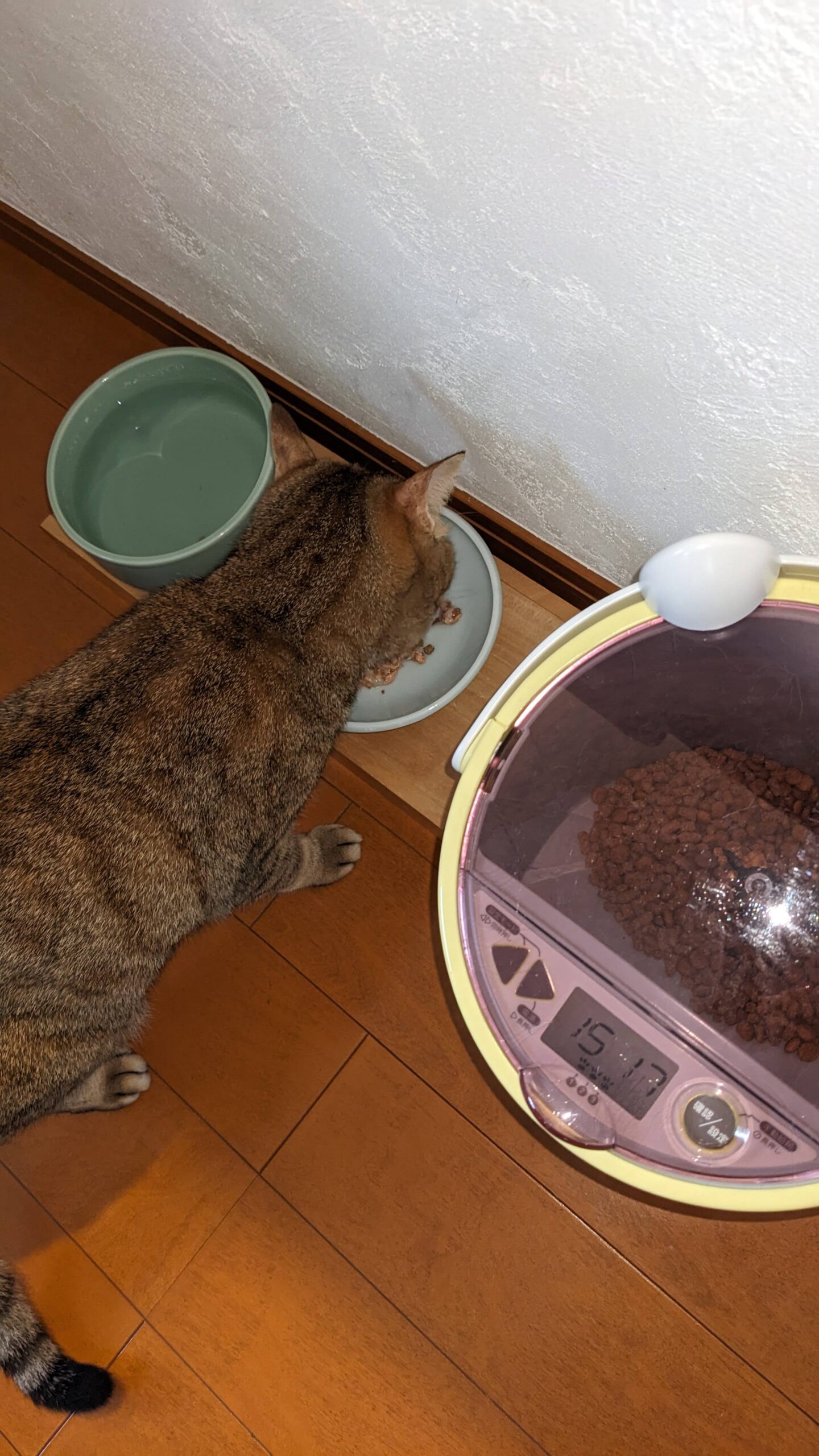 ごはんの準備をしているとキッチンに来て、「早く食べたいニャ~!」と言っているようでした(*^^*)