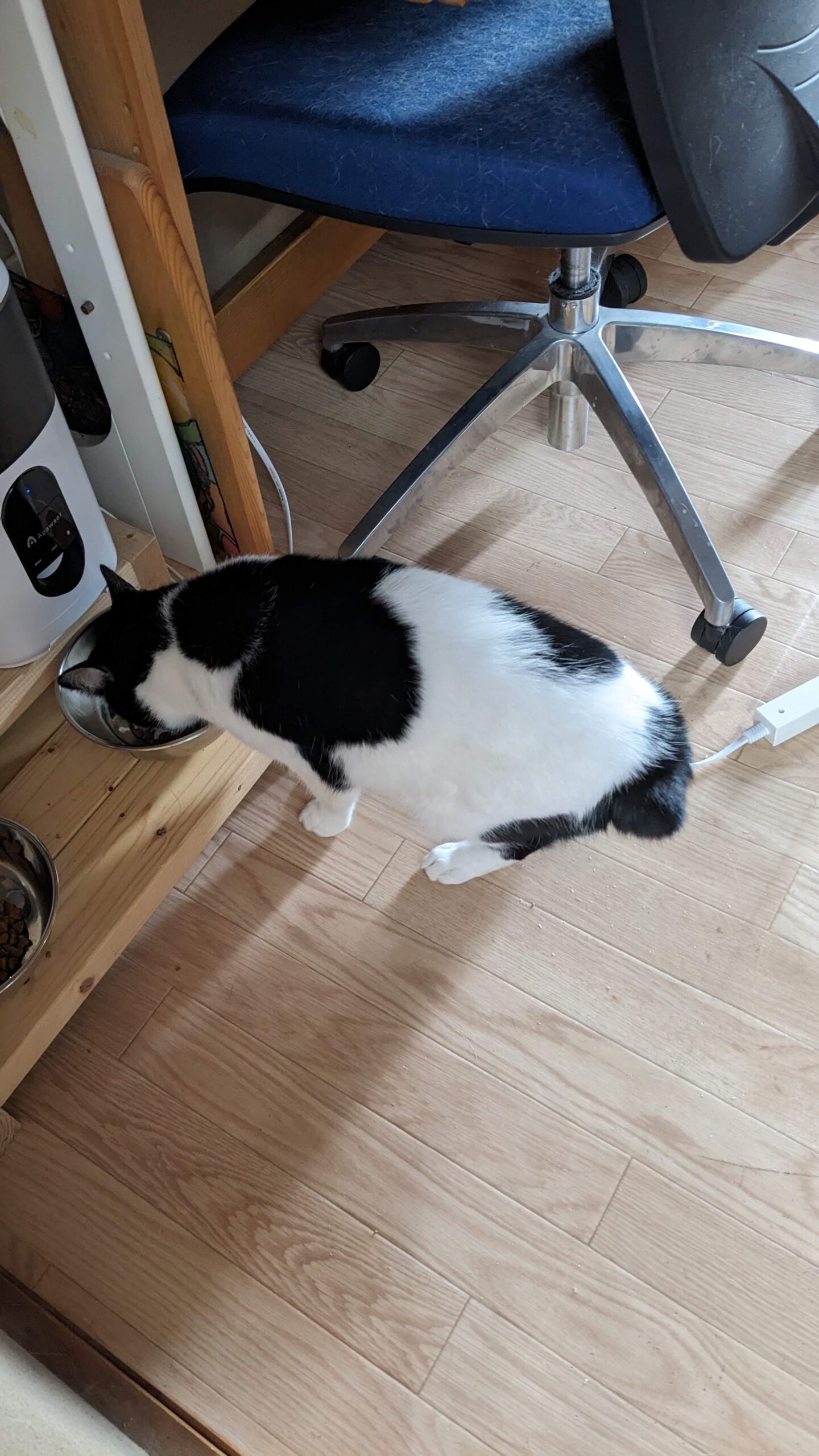 もーくんは人見知りで、ごはんの時以外は遠巻きに見ています。