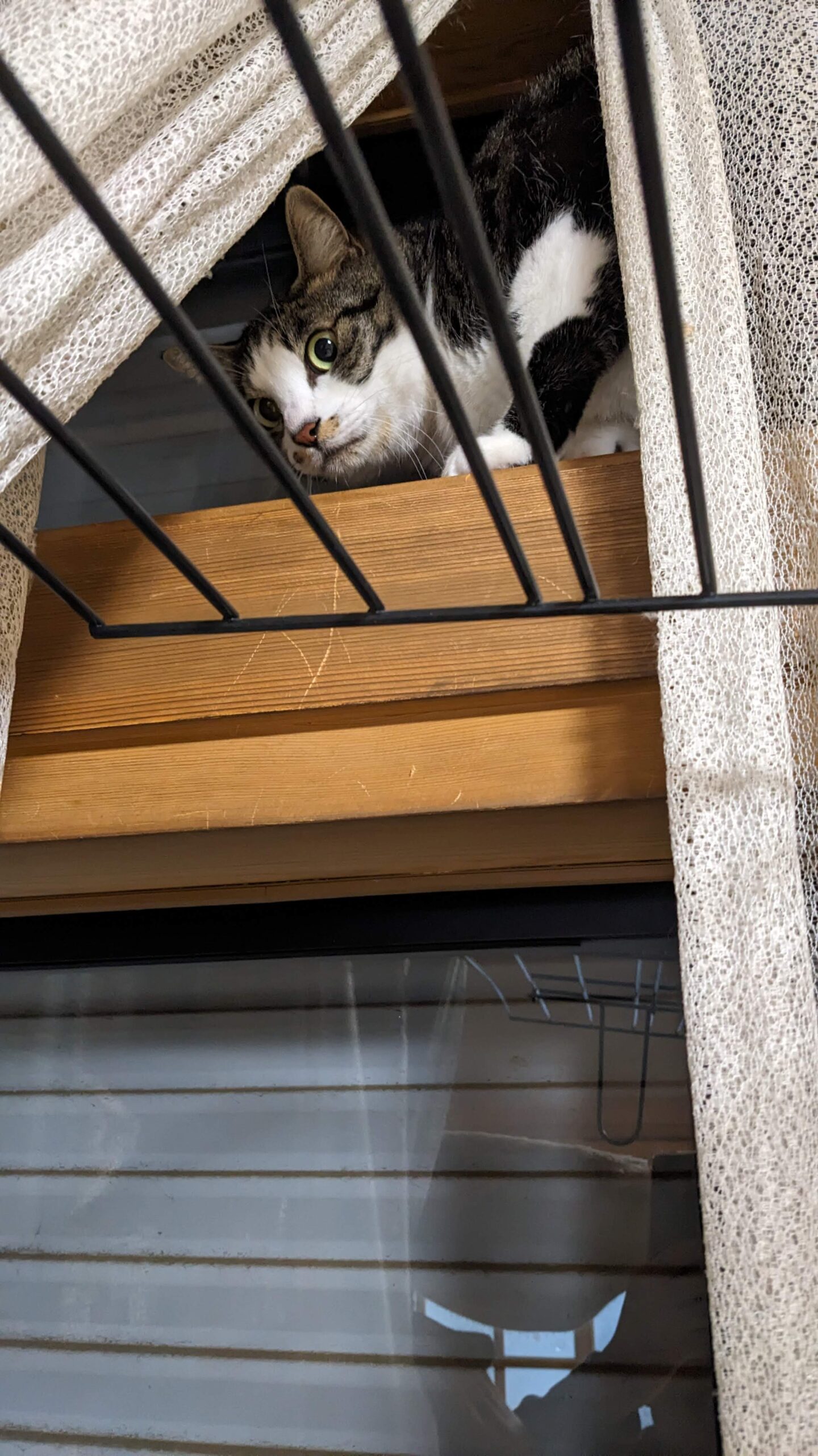 キジくんはかなりの人見知りで、シッティング中はずっと窓の上や隙間に隠れていました。
