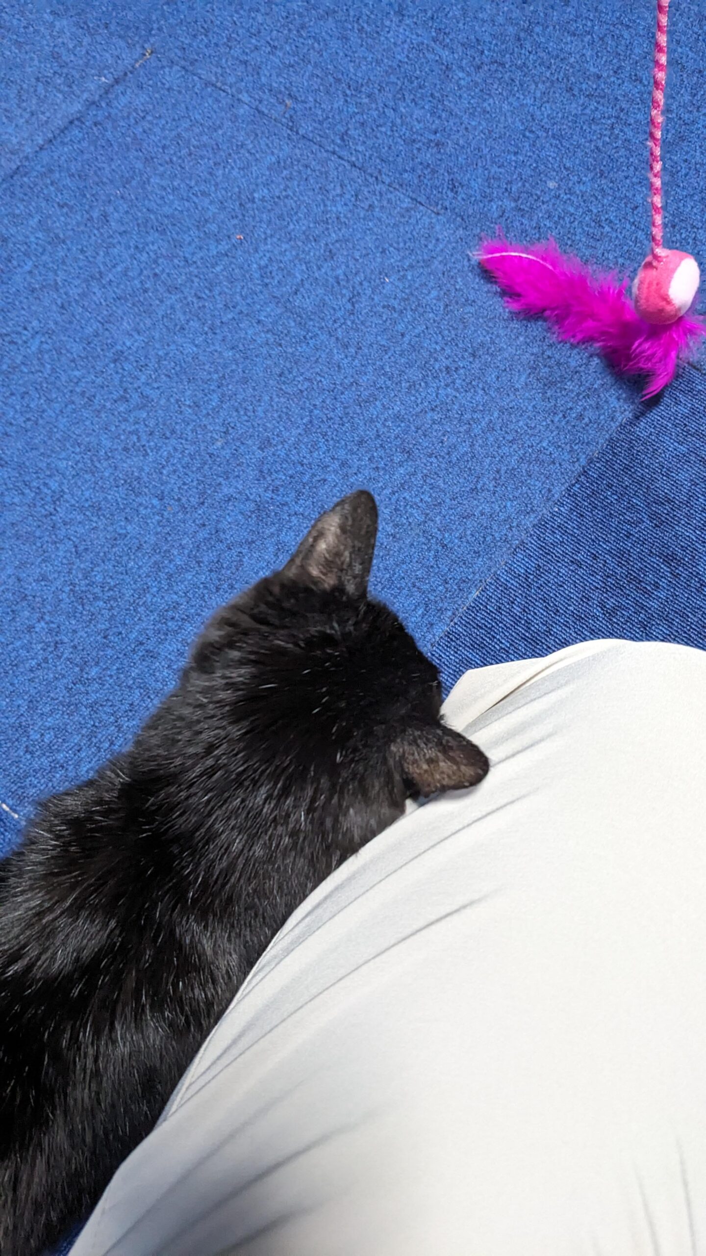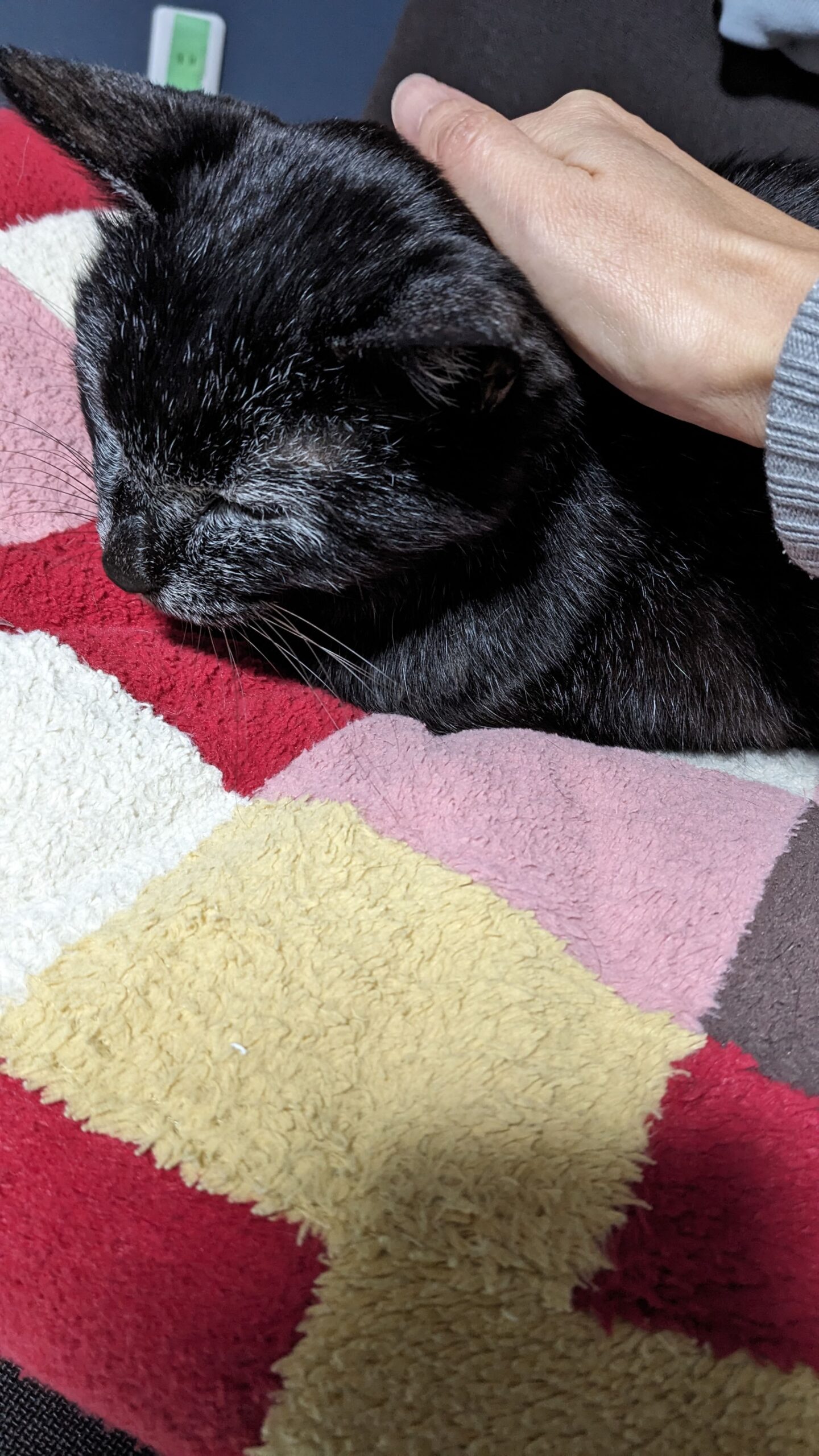少し寒かったようで、膝の上に乗ってきてくれました。