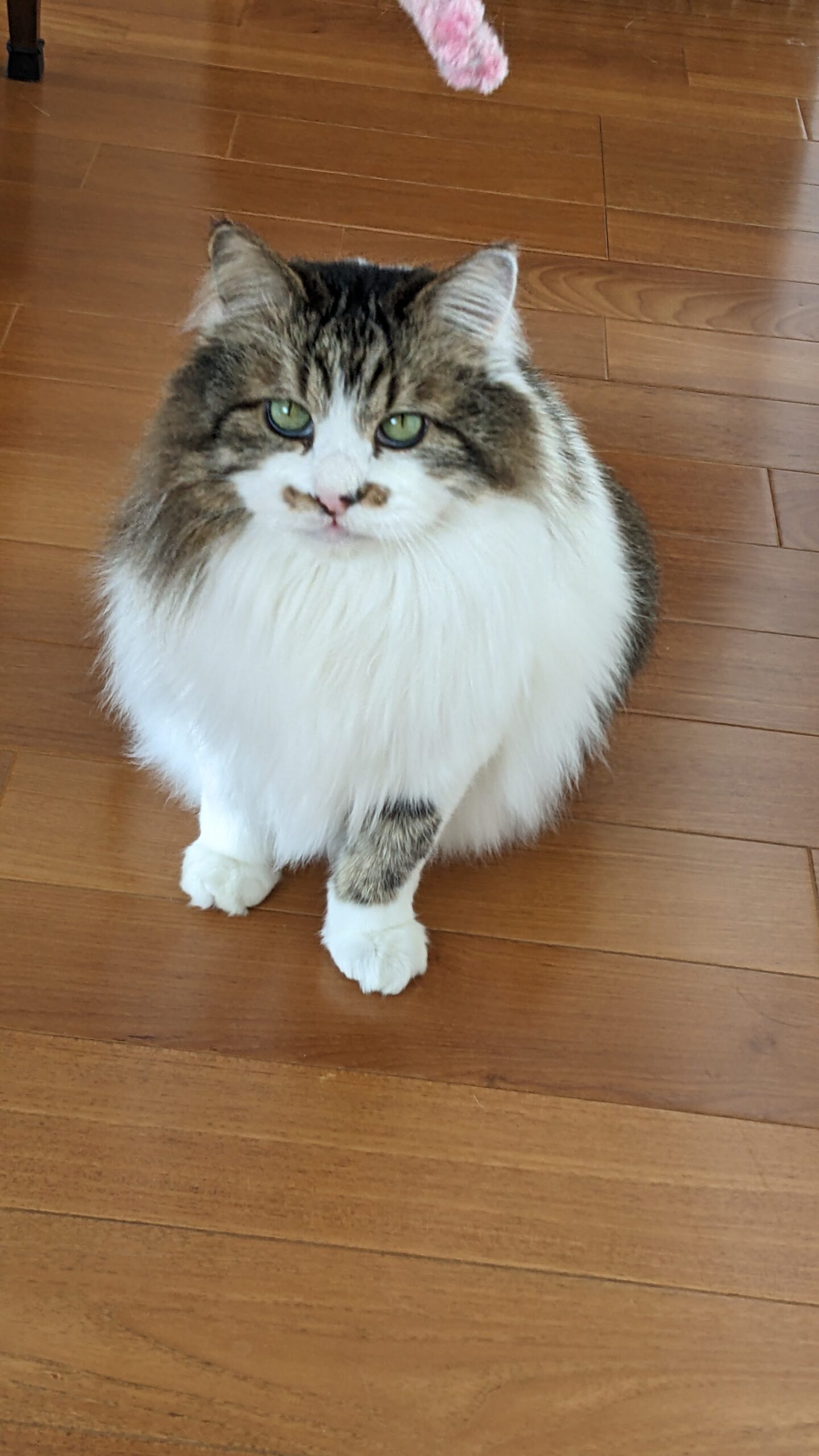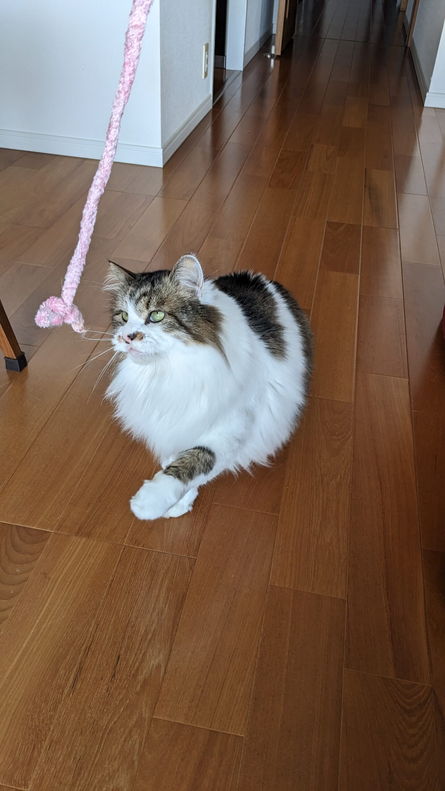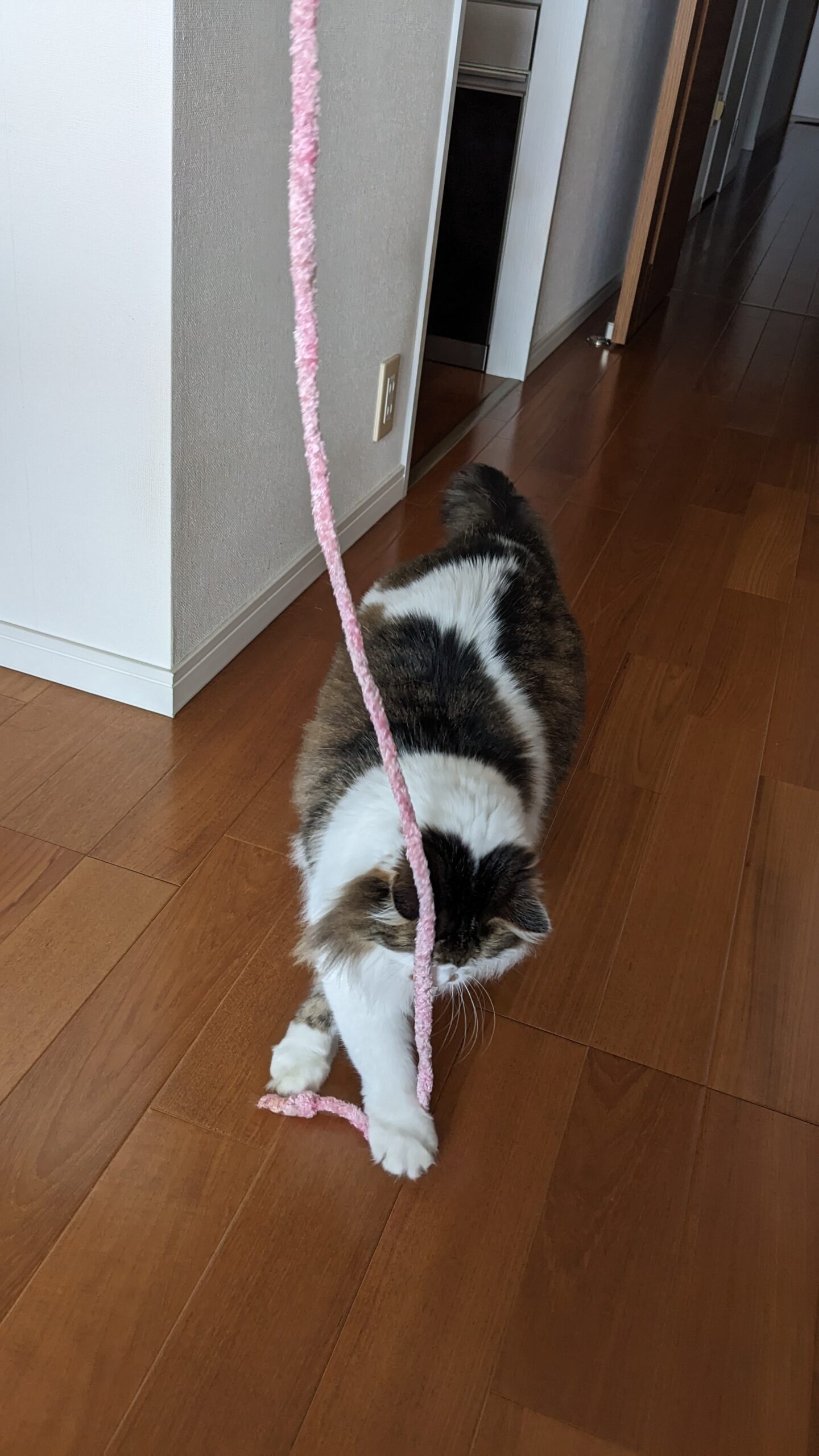 紐のおもちゃを追いかけて廊下を走り周り、ちょっと息切れ気味でした💦