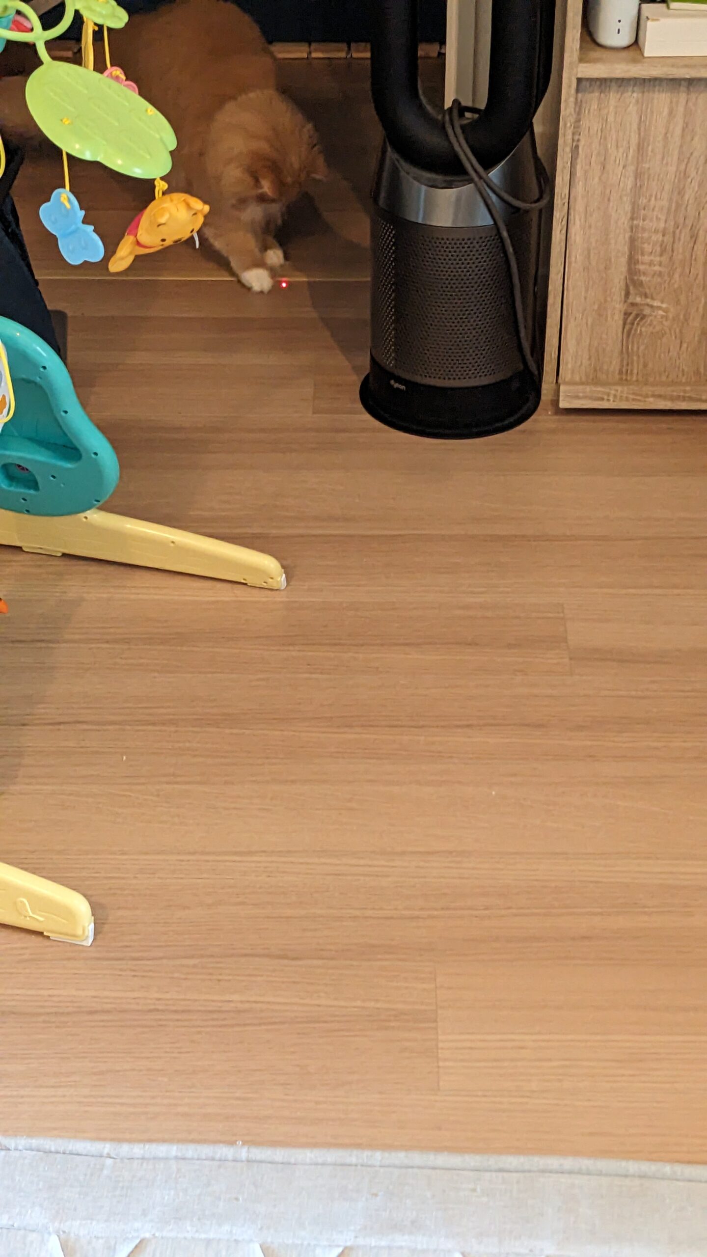 お世話のあいだ、つむぎくんはレーザーポインタに夢中でした!