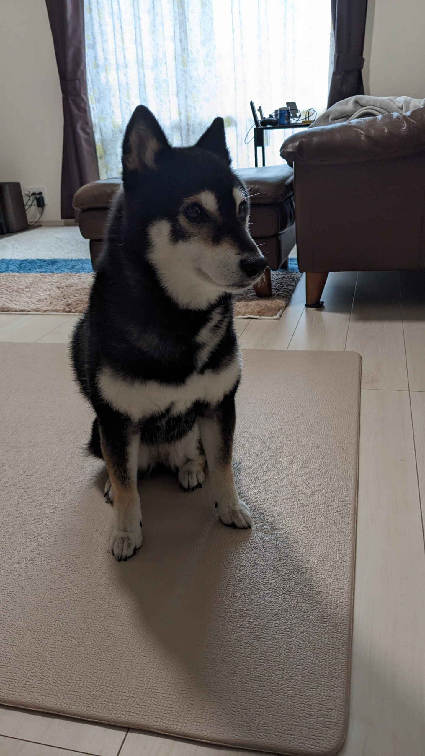 お世話にお伺いさせていただくと、リビングからこちらを見つめていたかえでちゃん。